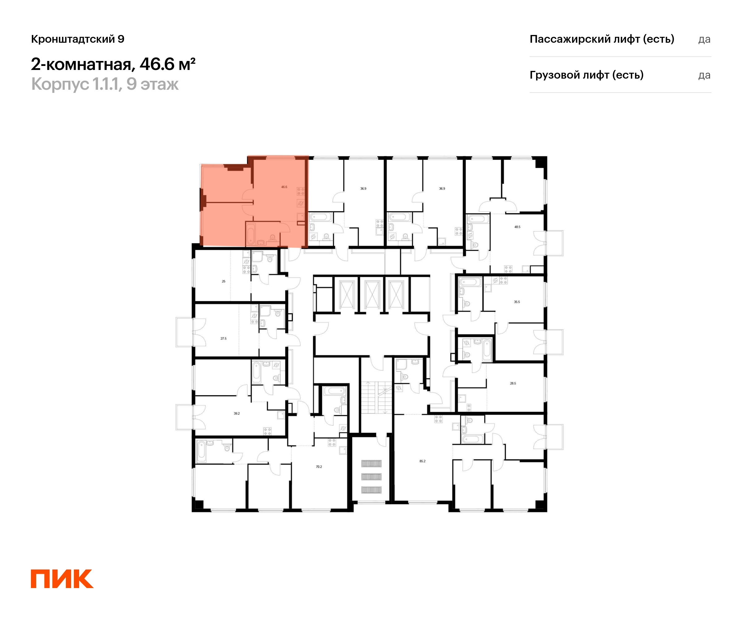 В Головинском районе продаётся 2-комнатная квартира квартира площадью 46.6 на 9 этаже 12 этажного дома (корпус 1.1.1, секция 1) в проекте ПИК «Кронштадтский 9». Удобное расположение 3 минуты пешком до станции метро «Водный стадион». 2 минуты на автомобиле до Ленинградского шоссе, 10 минут до ТТК и 16 минут до МКАД. 4 минуты пешком до ТЦ «Водный». 15 минут пешком до парка у Головинских прудов и 18 минут до парка «Дружба». Особенности проекта «Кронштадтский 9» — квартал «Серии плюс» с уникальной архитектурой. У проекта собственная инфраструктура, а удобные и разнообразные планировки позволят каждому выбрать квартиру для собственного сценария жизни. Преимущества проекта: Отделка: Дизайнерские лобби с зонами ожидания, кондиционерами, быстрыми тихими лифтами. Два детских сада на территории проекта. Дворы-парки с игровыми и спортивными площадками. Магазины, кафе и полезные сервисы на первых этажах домов. Подземный паркинг. АртикулО застройщике