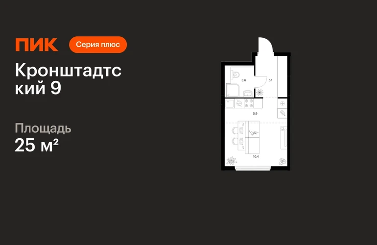 В Головинском районе продаётся студия квартира площадью 25 на 9 этаже 12 этажного дома (корпус 1.1.1, секция 1) в проекте ПИК «Кронштадтский 9». Удобное расположение 3 минуты пешком до станции метро «Водный стадион». 2 минуты на автомобиле до Ленинградского шоссе, 10 минут до ТТК и 16 минут до МКАД. 4 минуты пешком до ТЦ «Водный». 15 минут пешком до парка у Головинских прудов и 18 минут до парка «Дружба». Особенности проекта «Кронштадтский 9» — квартал «Серии плюс» с уникальной архитектурой. У проекта собственная инфраструктура, а удобные и разнообразные планировки позволят каждому выбрать квартиру для собственного сценария жизни. Преимущества проекта: Отделка: Дизайнерские лобби с зонами ожидания, кондиционерами, быстрыми тихими лифтами. Два детских сада на территории проекта. Дворы-парки с игровыми и спортивными площадками. Магазины, кафе и полезные сервисы на первых этажах домов. Подземный паркинг. АртикулО застройщике