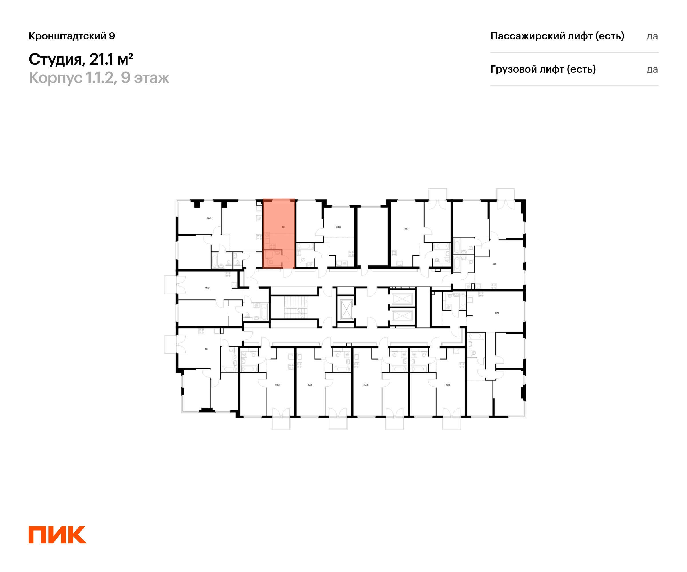 В Головинском районе продаётся студия квартира площадью 21.1 на 9 этаже 12 этажного дома (корпус 1.1.2, секция 2) в проекте ПИК «Кронштадтский 9». Удобное расположение 3 минуты пешком до станции метро «Водный стадион». 2 минуты на автомобиле до Ленинградского шоссе, 10 минут до ТТК и 16 минут до МКАД. 4 минуты пешком до ТЦ «Водный». 15 минут пешком до парка у Головинских прудов и 18 минут до парка «Дружба». Особенности проекта «Кронштадтский 9» — квартал «Серии плюс» с уникальной архитектурой. У проекта собственная инфраструктура, а удобные и разнообразные планировки позволят каждому выбрать квартиру для собственного сценария жизни. Преимущества проекта: Отделка: Дизайнерские лобби с зонами ожидания, кондиционерами, быстрыми тихими лифтами. Два детских сада на территории проекта. Дворы-парки с игровыми и спортивными площадками. Магазины, кафе и полезные сервисы на первых этажах домов. Подземный паркинг. АртикулО застройщике