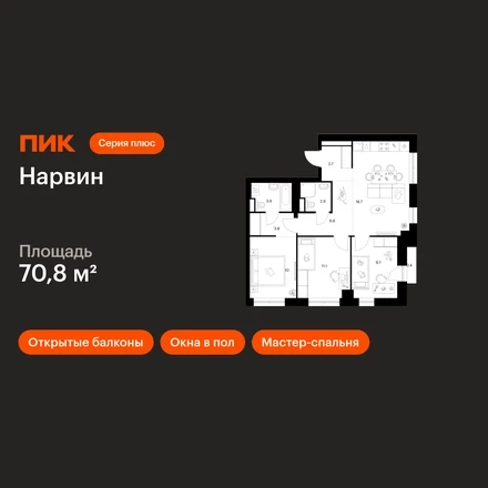 В Головинском районе продаётся 3-комнатная квартира квартира площадью 70.8 на 10 этаже 38 этажного дома (корпус 1.3, секция 3) в проекте ПИК «Нарвин». Удобное расположение 10 минут пешком до станции метро «Водный стадион» и 20 минут до МЦК «Коптево». 10 минут на автомобиле до ТТК. 5 минут пешком до ТЦ «Водный стадион». 8 минут пешком до Головинских прудов, 10 минут до Кронштадтского сквера и 15 минут до парка Дружбы. Особенности проекта «Нарвин» — камерный квартал «Серии плюс» из трёх зданий с продуманной архитектурой, рядом с метро «Водный стадион». В проекте вы найдёте квартиры с готовой отделкой, умными планировками, окнами в пол и балконами с видами на Головинские пруды. Преимущества проекта: Отделка: Готовая Особенности планировки: Гардеробная, Мастер-спальня, Кухня-ниша, Кухня-гостиная, Два и более санузла, Открытый балкон, Окна в пол, Умная планировка Дизайнерские лобби с быстрыми и тихими лифтами, зонами ожидания и колясочными. Дворы-парки с местами для отдыха, лавочками с USB-зарядками, детскими и спортивными площадками. Магазины, кафе и полезные сервисы на первых этажах домов. Подземный паркинг. АртикулО застройщике