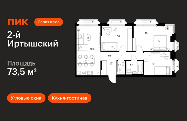 В районе Гольяново продаётся 3-комнатная квартира квартира площадью 73.5 кв. м на 6 этаже 16 этажного дома (корпус, секция) в проекте ПИК «2-й Иртышский». Удобное расположение 25 минут пешком до станции метро «Черкизовская» 14 минут на автомобиле до МКАД и 20 минут до ТТК 12 минут на машине до ТРЦ «Щёлковский» 15 минут пешком до «Сиреневого сада» и 6 минут на автомобиле до «Лосиного острова» и Гольяновского пруда Особенности проекта «2-й Иртышский» — современный проект с корпусами «Серии плюс» в районе, где создана качественная среда для полноценной жизни, работы и отдыха. А удобные и разнообразные планировки позволят каждому выбрать квартиру для собственного сценария жизни. Преимущества проекта: Отделка:Готовая Особенности планировки: Кухня-ниша, Кухня-гостиная, Два и более санузла, Широкие окна, Угловые окна Лобби с дизайнерской отделкой, зонами ожидания и колясочными. Детский сад для 350 малышей и школа на 950 мест. Пешеходный бульвар для неспешных прогулок и отдыха. Подземный паркинг. АртикулО застройщике