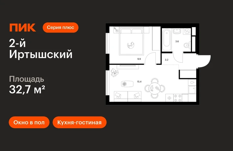 В районе Гольяново продаётся 1-комнатная квартира квартира площадью 32.7 кв. м на 33 этаже 43 этажного дома (корпус, секция) в проекте ПИК «2-й Иртышский». Удобное расположение 25 минут пешком до станции метро «Черкизовская» 14 минут на автомобиле до МКАД и 20 минут до ТТК 12 минут на машине до ТРЦ «Щёлковский» 15 минут пешком до «Сиреневого сада» и 6 минут на автомобиле до «Лосиного острова» и Гольяновского пруда Особенности проекта «2-й Иртышский» — современный проект с корпусами «Серии плюс» в районе, где создана качественная среда для полноценной жизни, работы и отдыха. А удобные и разнообразные планировки позволят каждому выбрать квартиру для собственного сценария жизни. Преимущества проекта: Отделка:Готовая Особенности планировки: Кухня-гостиная, Окна в пол Лобби с дизайнерской отделкой, зонами ожидания и колясочными. Детский сад для 350 малышей и школа на 950 мест. Пешеходный бульвар для неспешных прогулок и отдыха. Подземный паркинг. АртикулО застройщике