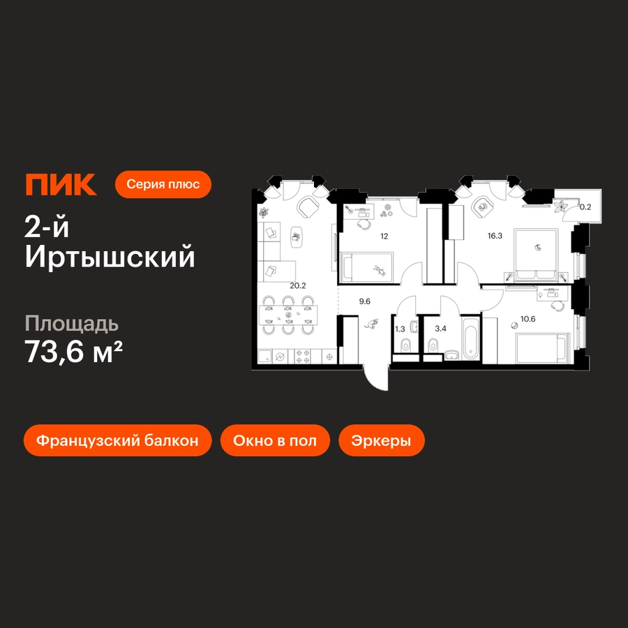 В районе Гольяново продаётся 3-комнатная квартира квартира площадью 73.6 кв. м на 3 этаже 16 этажного дома (корпус, секция) в проекте ПИК «2-й Иртышский». Удобное расположение 25 минут пешком до станции метро «Черкизовская» 14 минут на автомобиле до МКАД и 20 минут до ТТК 12 минут на машине до ТРЦ «Щёлковский» 15 минут пешком до «Сиреневого сада» и 6 минут на автомобиле до «Лосиного острова» и Гольяновского пруда Особенности проекта «2-й Иртышский» — современный проект с корпусами «Серии плюс» в районе, где создана качественная среда для полноценной жизни, работы и отдыха. А удобные и разнообразные планировки позволят каждому выбрать квартиру для собственного сценария жизни. Преимущества проекта: Отделка:Готовая Особенности планировки: Кухня-ниша, Кухня-гостиная, Два и более санузла, Французский балкон, Окна в пол, Эркер, Внутрипольные конвекторы Лобби с дизайнерской отделкой, зонами ожидания и колясочными. Детский сад для 350 малышей и школа на 950 мест. Пешеходный бульвар для неспешных прогулок и отдыха. Подземный паркинг. АртикулО застройщике