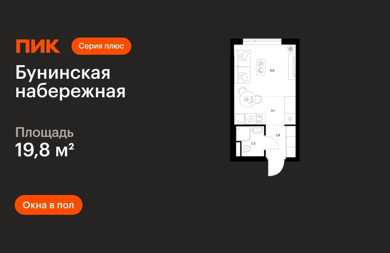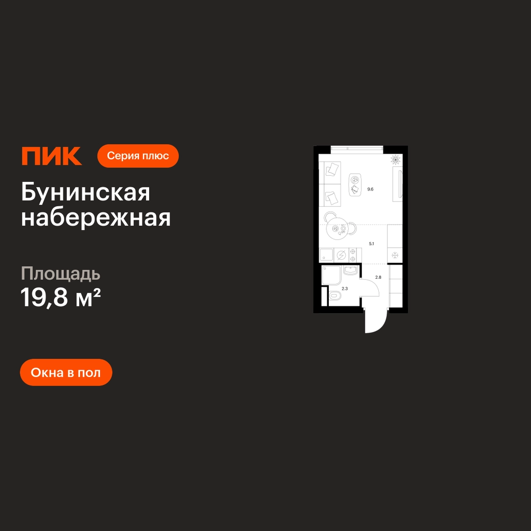В Новой Москве продаётся студия квартира площадью 19.8 на 5 этаже 16 этажного дома (корпус 2.6/1.1, секция 1) в проекте ПИК «Бунинская набережная». Удобное расположение 18 минут пешком до станции метро «Потапово» и 12 минут на машине до метро «Бунинская аллея». 9 минут на машине до Солнцево-Бутово-Варшавского шоссе и 17 минут до МКАД. 8 минут на автомобиле до гипермаркета «Глобус». 15 минут на автомобиле до живописного Бутовского лесопарка и заказника «Южное Бутово». Особенности проекта «Бунинская набережная» — камерный квартал «Серии плюс» на берегу Ивановского пруда. В шаговой доступности вся нужная инфраструктура: детские сады, школы, поликлиники, игровая площадка PlayHub «Пирамиды» и скейт-парк. Удобные и разнообразные планировки позволят каждому выбрать квартиру для собственного сценария жизни. Преимущества проекта: Отделка: Готовая Особенности планировки: Окна в пол, Внутрипольные конвекторы Просторные и светлые лобби с быстрыми тихими лифтами. Дворы-парки с местами для отдыха, детскими и спортивными площадками. Пешеходный бульвар и благоустроенная набережная. Магазины, кафе и полезные сервисы на первых этажах домов. Подземный паркинг. АртикулО застройщике