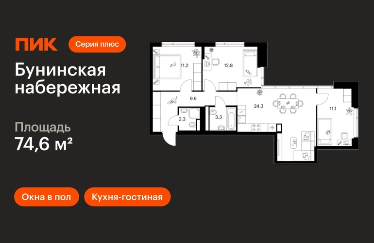 В Новой Москве продаётся 3-комнатная квартира квартира площадью 74.6 на 16 этаже 16 этажного дома (корпус 2.6/1.3, секция 3) в проекте ПИК «Бунинская набережная». Удобное расположение 18 минут пешком до станции метро «Потапово» и 12 минут на машине до метро «Бунинская аллея». 9 минут на машине до Солнцево-Бутово-Варшавского шоссе и 17 минут до МКАД. 8 минут на автомобиле до гипермаркета «Глобус». 15 минут на автомобиле до живописного Бутовского лесопарка и заказника «Южное Бутово». Особенности проекта «Бунинская набережная» — камерный квартал «Серии плюс» на берегу Ивановского пруда. В шаговой доступности вся нужная инфраструктура: детские сады, школы, поликлиники, игровая площадка PlayHub «Пирамиды» и скейт-парк. Удобные и разнообразные планировки позволят каждому выбрать квартиру для собственного сценария жизни. Преимущества проекта: Отделка: Готовая Особенности планировки: Разнесенные спальни, Кухня-гостиная, Два и более санузла, Окна в пол, Внутрипольные конвекторы Просторные и светлые лобби с быстрыми тихими лифтами. Дворы-парки с местами для отдыха, детскими и спортивными площадками. Пешеходный бульвар и благоустроенная набережная. Магазины, кафе и полезные сервисы на первых этажах домов. Подземный паркинг. АртикулО застройщике