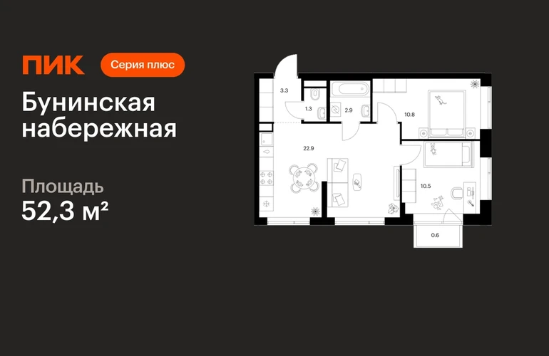В Новой Москве продаётся 2-комнатная квартира квартира площадью 52.3 на 12 этаже 16 этажного дома (корпус 2.6/1.5, секция 5) в проекте ПИК «Бунинская набережная». Удобное расположение 18 минут пешком до станции метро «Потапово» и 12 минут на машине до метро «Бунинская аллея». 9 минут на машине до Солнцево-Бутово-Варшавского шоссе и 17 минут до МКАД. 8 минут на автомобиле до гипермаркета «Глобус». 15 минут на автомобиле до живописного Бутовского лесопарка и заказника «Южное Бутово». Особенности проекта «Бунинская набережная» — камерный квартал «Серии плюс» на берегу Ивановского пруда. В шаговой доступности вся нужная инфраструктура: детские сады, школы, поликлиники, игровая площадка PlayHub «Пирамиды» и скейт-парк. Удобные и разнообразные планировки позволят каждому выбрать квартиру для собственного сценария жизни. Преимущества проекта: Отделка: Просторные и светлые лобби с быстрыми тихими лифтами. Дворы-парки с местами для отдыха, детскими и спортивными площадками. Пешеходный бульвар и благоустроенная набережная. Магазины, кафе и полезные сервисы на первых этажах домов. Подземный паркинг. АртикулО застройщике