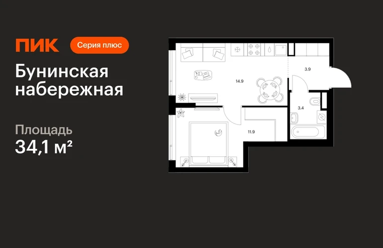 В Новой Москве продаётся 1-комнатная квартира квартира площадью 34.1 на 9 этаже 16 этажного дома (корпус 2.6/1.5, секция 5) в проекте ПИК «Бунинская набережная». Удобное расположение 18 минут пешком до станции метро «Потапово» и 12 минут на машине до метро «Бунинская аллея». 9 минут на машине до Солнцево-Бутово-Варшавского шоссе и 17 минут до МКАД. 8 минут на автомобиле до гипермаркета «Глобус». 15 минут на автомобиле до живописного Бутовского лесопарка и заказника «Южное Бутово». Особенности проекта «Бунинская набережная» — камерный квартал «Серии плюс» на берегу Ивановского пруда. В шаговой доступности вся нужная инфраструктура: детские сады, школы, поликлиники, игровая площадка PlayHub «Пирамиды» и скейт-парк. Удобные и разнообразные планировки позволят каждому выбрать квартиру для собственного сценария жизни. Преимущества проекта: Отделка: Просторные и светлые лобби с быстрыми тихими лифтами. Дворы-парки с местами для отдыха, детскими и спортивными площадками. Пешеходный бульвар и благоустроенная набережная. Магазины, кафе и полезные сервисы на первых этажах домов. Подземный паркинг. АртикулО застройщике
