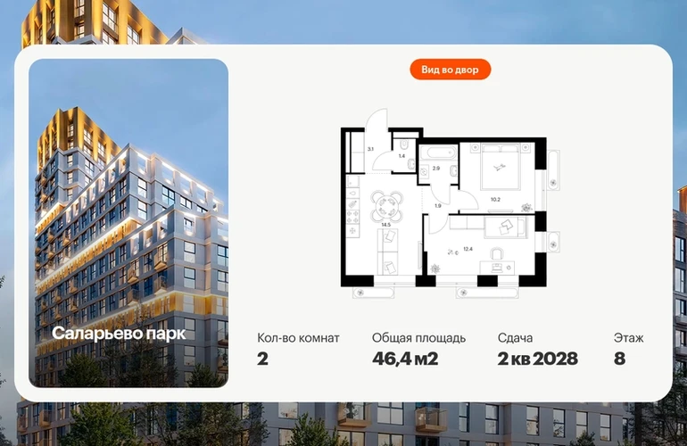 Продаётся 2-комн.квартира площадью 46.40 кв.м на 8 этаже 16 этажного дома (Корпус 57.4, секция 4) проекта ПИК Саларьево парк. Светлый просторный подъезд на уровне земли, функциональная планировка, большие окна, с отделкой. Жилой район «Саларьево парк» расположен в Новой Москве, в четырёх километрах от МКАД по Киевскому шоссе. Две станции метро: «Саларьево» и «Филатов луг», — находятся в пешей доступности от проекта. Дойти до них можно за 5–10 минут. В квартале уже создана качественная среда, где есть абсолютно всё для полноценной жизни, работы и отдыха. «Саларьево парк» — не просто квартал, а полноценный жилой район, который отличается разноплановой архитектурой. Над концепцией квартала работали несколько ведущих архитектурных бюро, которые стремились добиться разнообразия в фасадных решениях. Ярким примером такого подхода станут корпуса 82 и 83, которые относятся к «Серии плюс». Новый корпус 83 был создан по принципам южной архитектуры: расслабленный и лаконичный силуэт зданий, привлекающий к себе внимание. Архитектурная изюминка 83-го корпуса — террасы и фигурные балконы. Вместе с окнами и другими акцентными элементами они создают уникальный облик здания, отсылая нас к изысканной южной архитектуре. Все корпуса в квартале гармонично сочетаются, образуя единую городскую среду. Здесь приятно гулять и проводить время на улице всей семьёй. В «Саларьево парке» создана уникальная образовательная среда, включающая в себя шесть школ, рассчитанных на 6 250 учеников. Четыре из них уже открыты, их посещает 2 300 детей. Также на территории «Саларьево парка» находится 12 детских садов, один из которых с бассейном. Сейчас уже открыты 8 садов. В «Саларьево парке» открыта уникальная игровая площадка — PlayHub «Оригами». Здесь есть ручей, горка-труба и рельефные холмы. Взрослые смогут отдохнуть в уютном кафе, пока дети играют. Также на территории проекта есть SportHub — большая спортивная зона, разделённая по интересам и возрастам. Здесь можно заниматься разными видами спорта: футболом, баскетболом, волейболом и стритболом. Зимой центральную часть площадки превращают в каток. Во дворах-парках жилого квартала есть места для отдыха, детские и спортивные площадки. На первых этажах домов расположены магазины, кафе и полезные сервисы. Также вблизи проекта есть несколько масштабных торговых центров. До ТЦ «Саларис» пять минут пешком, до «Рио», Metro Cash & Carry и «Леруа Мерлен» — пять минут на автомобиле. Артикул - 1018597О застройщике