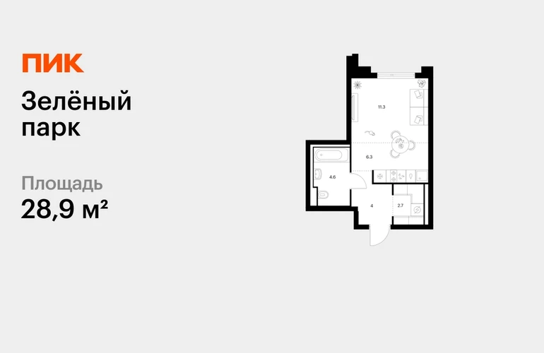 В «Зеленограде» продаётся студия квартира площадью 28.9 на 2 этаже 28 этажного дома (корпус, секция) в проекте ПИК «Зелёный парк». Удобное расположение: 20 минут пешком до МЦД-3 «Зеленоград-Крюково». 3 минуты на автомобиле до Кутузовского шоссе, 15 минут до Пятницкого шоссе. 2 минуты пешком до велодрома и лыже-роллерной трассы. 12 минут пешком до Каменского пруда, 7 минут на автомобиле до парка «Зелёный бор». Особенности проекта Масштабный квартал с оригинальной архитектурой в экологичном районе Зеленограда. Проект выглядит современно благодаря уникальным фасадам зданий, которые разработали ведущие российские архитектурные бюро. А удобные и разнообразные планировки позволят каждому выбрать квартиру для собственного сценария жизни. Преимущества проекта: Отделка: Готовая Особенности планировки: Гардеробная, Кухня-ниша, Окна в пол, Умная планировка Светлые просторные лобби с дизайнерской отделкой и бесшумными лифтами. Два детских сада для 250 малышей и две школы для 1100 учеников. Дворы-парки с игровыми и спортивными площадками, местами для отдыха и кофейнями. Пешеходный бульвар для неспешных прогулок и отдыха. Наземные и гостевые паркинги. АртикулО застройщике