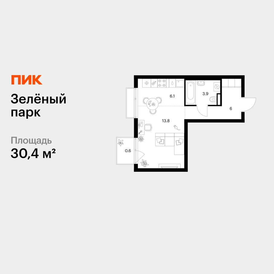 В «Зеленограде» продаётся 1-комнатная квартира квартира площадью 30.4 на 4 этаже 10 этажного дома (корпус, секция) в проекте ПИК «Зелёный парк». Удобное расположение: 20 минут пешком до МЦД-3 «Зеленоград-Крюково». 3 минуты на автомобиле до Кутузовского шоссе, 15 минут до Пятницкого шоссе. 2 минуты пешком до велодрома и лыже-роллерной трассы. 12 минут пешком до Каменского пруда, 7 минут на автомобиле до парка «Зелёный бор». Особенности проекта Масштабный квартал с оригинальной архитектурой в экологичном районе Зеленограда. Проект выглядит современно благодаря уникальным фасадам зданий, которые разработали ведущие российские архитектурные бюро. А удобные и разнообразные планировки позволят каждому выбрать квартиру для собственного сценария жизни. Преимущества проекта: Отделка: Светлые просторные лобби с дизайнерской отделкой и бесшумными лифтами. Два детских сада для 250 малышей и две школы для 1100 учеников. Дворы-парки с игровыми и спортивными площадками, местами для отдыха и кофейнями. Пешеходный бульвар для неспешных прогулок и отдыха. Наземные и гостевые паркинги. АртикулО застройщике