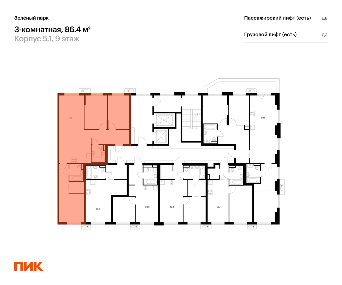 В «Зеленограде» продаётся 3-комнатная квартира квартира площадью 86.4 на 9 этаже 14 этажного дома (корпус, секция) в проекте ПИК «Зелёный парк». Удобное расположение: 20 минут пешком до МЦД-3 «Зеленоград-Крюково». 3 минуты на автомобиле до Кутузовского шоссе, 15 минут до Пятницкого шоссе. 2 минуты пешком до велодрома и лыже-роллерной трассы. 12 минут пешком до Каменского пруда, 7 минут на автомобиле до парка «Зелёный бор». Особенности проекта Масштабный квартал с оригинальной архитектурой в экологичном районе Зеленограда. Проект выглядит современно благодаря уникальным фасадам зданий, которые разработали ведущие российские архитектурные бюро. А удобные и разнообразные планировки позволят каждому выбрать квартиру для собственного сценария жизни. Преимущества проекта: Отделка: Светлые просторные лобби с дизайнерской отделкой и бесшумными лифтами. Два детских сада для 250 малышей и две школы для 1100 учеников. Дворы-парки с игровыми и спортивными площадками, местами для отдыха и кофейнями. Пешеходный бульвар для неспешных прогулок и отдыха. Наземные и гостевые паркинги. АртикулО застройщике