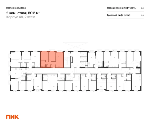 В Ленинский район Московской области продаётся 2-комнатная квартира квартира площадью 50.5 на 2 этаже 25 этажного дома (корпус 48, секция 4) в проекте ПИК «Восточное Бутово». Удобное расположение 20 минут на автомобиле до станций метро и МЦД «Бульвар Дмитрия Донского». 10 минут на машине до МКАД. 5 минут пешком до Бутовского лесопарка. 20 минут на автомобиле до ТЦ «Витте Молл», «Твой Дом» и ТРЦ VEGAS. Особенности проекта «Восточное Бутово» — масштабный квартал с готовой инфраструктурой в зелёном районе в 5 км от МКАД. В проекте есть вся необходимая инфраструктура. А удобные и разнообразные планировки позволят каждому выбрать квартиру для собственного сценария жизни. Преимущества проекта: Отделка: Предчистовая Особенности планировки: Кухня-ниша, Два и более санузла, Умная планировка Десять детских садов, четыре школы, две поликлиники на территории проекта. Дворы-парки с местами для отдыха, детскими и спортивными площадками. Два пешеходных бульвара для прогулок и отдыха. Магазины, кафе и полезные сервисы на первых этажах домов. Многоуровневый и подземный паркинги. АртикулО застройщике
