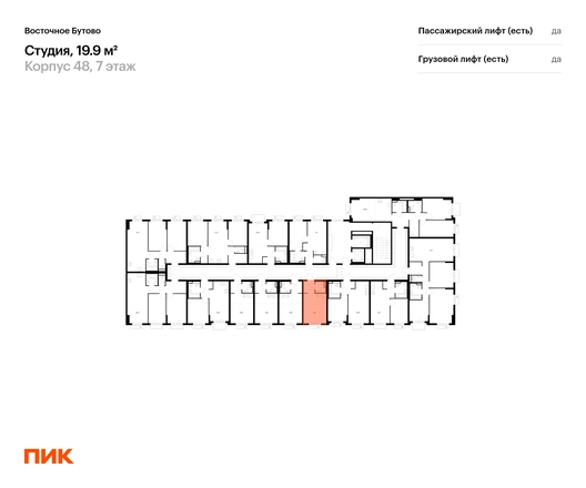 В Ленинский район Московской области продаётся студия квартира площадью 19.9 на 7 этаже 17 этажного дома (корпус 48, секция 2) в проекте ПИК «Восточное Бутово». Удобное расположение 20 минут на автомобиле до станций метро и МЦД «Бульвар Дмитрия Донского». 10 минут на машине до МКАД. 5 минут пешком до Бутовского лесопарка. 20 минут на автомобиле до ТЦ «Твой Дом». Особенности проекта «Восточное Бутово» — масштабный квартал с готовой инфраструктурой в зелёном районе в 5 км от МКАД. В проекте есть вся необходимая инфраструктура. А удобные и разнообразные планировки позволят каждому выбрать квартиру для собственного сценария жизни. Преимущества проекта: Отделка: Предчистовая Десять детских садов, четыре школы, две поликлиники на территории проекта. Дворы-парки с местами для отдыха, детскими и спортивными площадками. Два пешеходных бульвара для прогулок и отдыха. Магазины, кафе и полезные сервисы на первых этажах домов. Многоуровневый и подземный паркинги. АртикулО застройщике