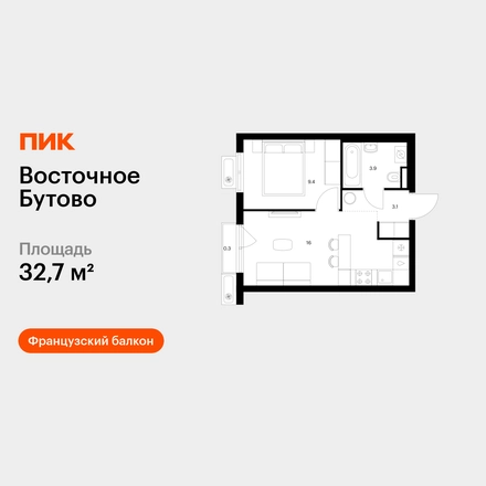 В Ленинский район Московской области продаётся 1-комнатная квартира квартира площадью 32.7 на 3 этаже 15 этажного дома (корпус 48, секция 3) в проекте ПИК «Восточное Бутово». Удобное расположение 20 минут на автомобиле до станций метро и МЦД «Бульвар Дмитрия Донского». 10 минут на машине до МКАД. 5 минут пешком до Бутовского лесопарка. 20 минут на автомобиле до ТЦ «Твой Дом». Особенности проекта «Восточное Бутово» — масштабный квартал с готовой инфраструктурой в зелёном районе в 5 км от МКАД. В проекте есть вся необходимая инфраструктура. А удобные и разнообразные планировки позволят каждому выбрать квартиру для собственного сценария жизни. Преимущества проекта: Отделка: Предчистовая Особенности планировки: Французский балкон Десять детских садов, четыре школы, две поликлиники на территории проекта. Дворы-парки с местами для отдыха, детскими и спортивными площадками. Два пешеходных бульвара для прогулок и отдыха. Магазины, кафе и полезные сервисы на первых этажах домов. Многоуровневый и подземный паркинги. АртикулО застройщике