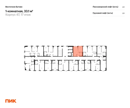 В Ленинский район Московской области продаётся 1-комнатная квартира квартира площадью 33.1 на 17 этаже 25 этажного дома (корпус 47, секция 3) в проекте ПИК «Восточное Бутово». Удобное расположение 20 минут на автомобиле до станций метро и МЦД «Бульвар Дмитрия Донского». 10 минут на машине до МКАД. 5 минут пешком до Бутовского лесопарка. 20 минут на автомобиле до ТЦ «Витте Молл», «Твой Дом» и ТРЦ VEGAS. Особенности проекта «Восточное Бутово» — масштабный квартал с готовой инфраструктурой в зелёном районе в 5 км от МКАД. В проекте есть вся необходимая инфраструктура. А удобные и разнообразные планировки позволят каждому выбрать квартиру для собственного сценария жизни. Преимущества проекта: Отделка: Предчистовая Десять детских садов, четыре школы, две поликлиники на территории проекта. Дворы-парки с местами для отдыха, детскими и спортивными площадками. Два пешеходных бульвара для прогулок и отдыха. Магазины, кафе и полезные сервисы на первых этажах домов. Многоуровневый и подземный паркинги. АртикулО застройщике