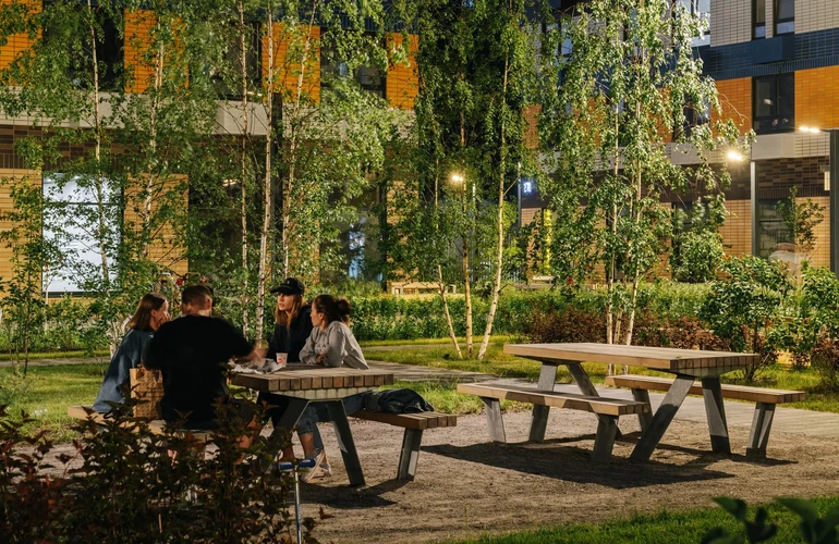 Рядом с проектом находятся Кузьминский и Жулебинский парки. Они подойдут для активного и семейного отдыха: здесь можно гулять по тропинкам или вокруг пруда, устраивать пикники, кататься на лыжах или велосипеде. Также можно узнать что-то новое, посетив усадьбу Кузьминки, где находится музеи, храм и конный двор.