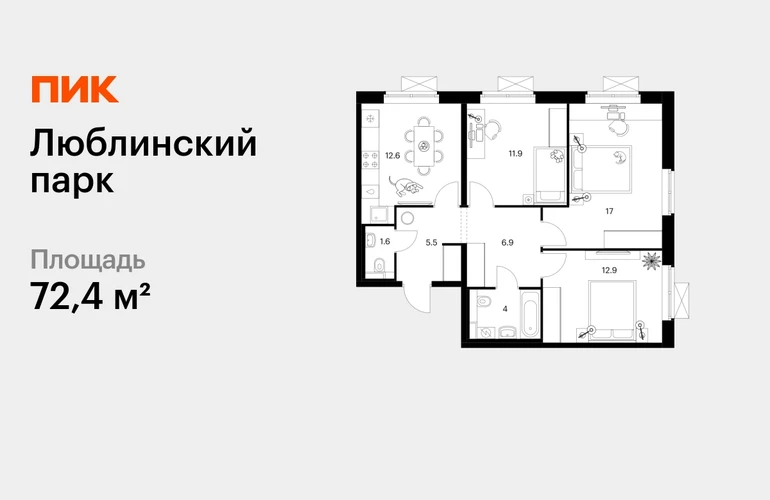 В районе Люблино продаётся 3-комнатная квартира квартира площадью 72.4 на 4 этаже 25 этажного дома (корпус 18-20, секция 2) в проекте ПИК «Люблинский парк». Удобное расположение 15 минут пешком до станции метро «Братиславская» и МЦД «Перерва». 11 минут на автомобиле до ЮВХ, 15 минут до МКАД и 19 минут до ТТК. 20 минут пешком до ТЦ «Люблино Молл». 15 минут пешком до БЛК «Марьино» и 15 минут на автомобиле до Люблинского парка. Особенности проекта «Люблинский парк» — масштабный квартал с собственной инфраструктурой на юго-востоке Москвы. В проекте будет вся необходимая инфраструктура. А удобные и разнообразные планировки позволят каждому выбрать квартиру для собственного сценария жизни. Преимущества проекта: Отделка: Готовая Три школы, семь детских садов и поликлиника на территории проекта. Дворы-парки с местами для отдыха, детскими и спортивными площадками. Пешеходный бульвар для прогулок и отдыха. PlayHub «Остров» — большая игровая площадка для детей разного возраста. На первых этажах домов — магазины, кафе и полезные сервисы. Подземный паркинг. АртикулО застройщике