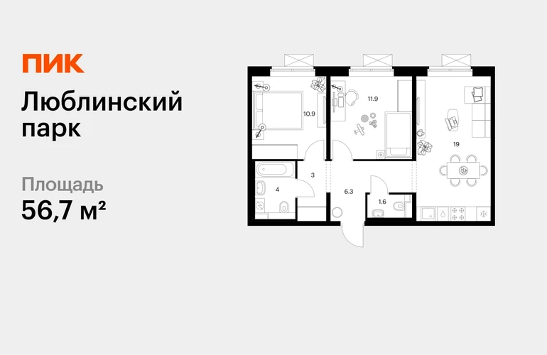 В районе Люблино продаётся 2-комнатная квартира квартира площадью 56.7 на 5 этаже 25 этажного дома (корпус 18-20, секция 2) в проекте ПИК «Люблинский парк». Удобное расположение 15 минут пешком до станции метро «Братиславская» и МЦД «Перерва». 11 минут на автомобиле до ЮВХ, 15 минут до МКАД и 19 минут до ТТК. 20 минут пешком до ТЦ «Люблино Молл». 15 минут пешком до БЛК «Марьино» и 15 минут на автомобиле до Люблинского парка. Особенности проекта «Люблинский парк» — масштабный квартал с собственной инфраструктурой на юго-востоке Москвы. В проекте будет вся необходимая инфраструктура. А удобные и разнообразные планировки позволят каждому выбрать квартиру для собственного сценария жизни. Преимущества проекта: Отделка: Три школы, семь детских садов и поликлиника на территории проекта. Дворы-парки с местами для отдыха, детскими и спортивными площадками. Пешеходный бульвар для прогулок и отдыха. PlayHub «Остров» — большая игровая площадка для детей разного возраста. На первых этажах домов — магазины, кафе и полезные сервисы. Подземный паркинг. АртикулО застройщике
