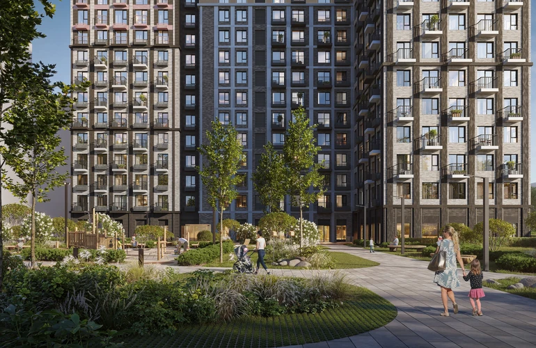 Дизайн проработан и внутри домов. На первых этажах — просторные и светлые лобби с дизайнерской отделкой. Здесь появятся зоны ожидания, скоростные лифты и помещение для хранения колясок и велосипедов.