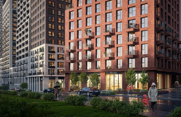Архитектурную концепцию квартала разработало бюро Slava+. Башня-доминанта и разновысотные корпуса с террасами формируют узнаваемый силуэт современного городского пространства. Терракотовые, белые и графитовые фасады корпусов создают сдержанный фон для башни-доминанты цвета красной охры.