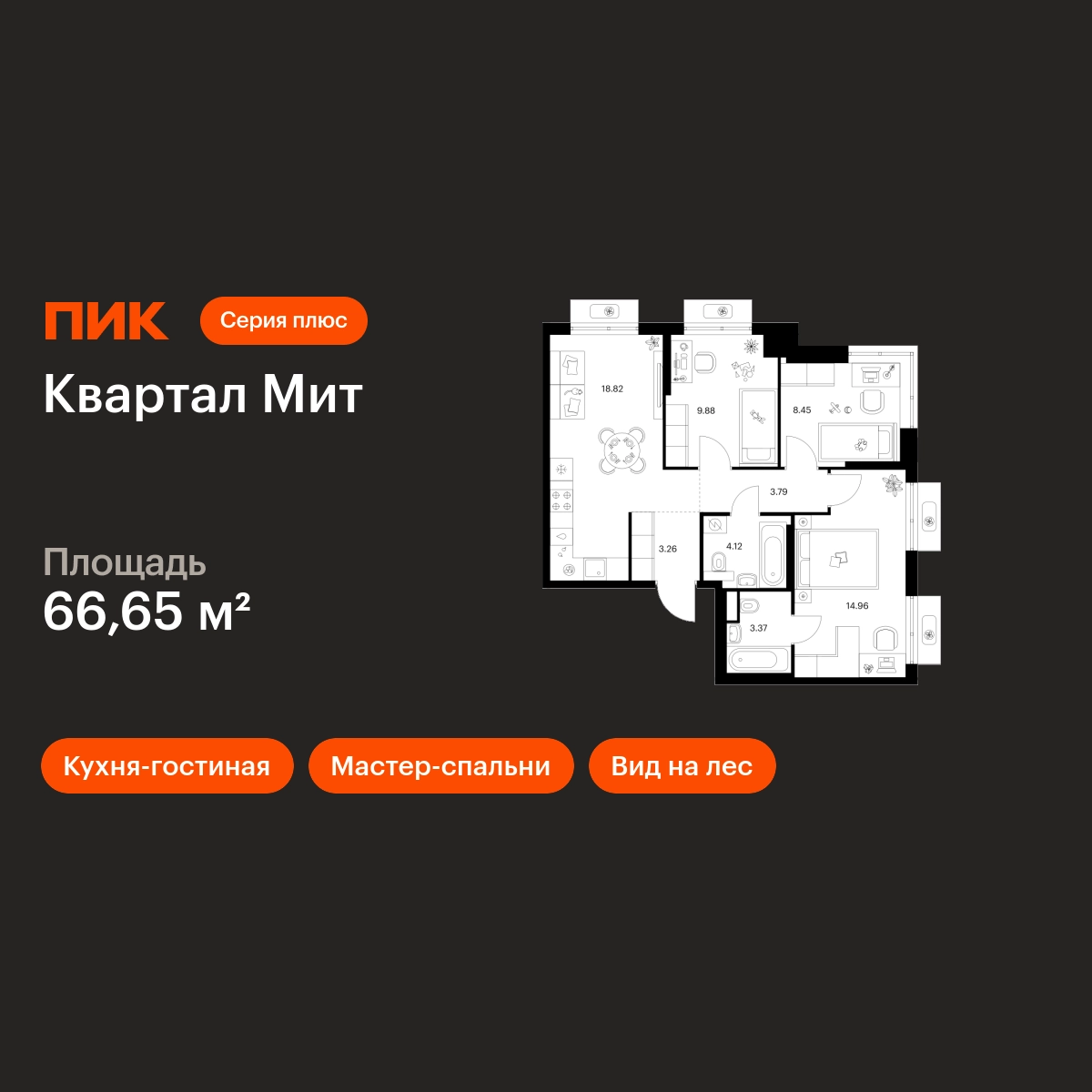 В районе Митино продаётся 3-комнатная квартира квартира площадью 66.65 на 21 этаже 26 этажного дома (корпус 3.2, секция 2) в проекте ПИК «Митинский лес». Удобное расположение 20 минут пешком до станции метро «Пятницкое шоссе». 8 минут на автомобиле до Пятницкого шоссе и 30 минут до центра Москвы. 11 минут на машине до гипермаркета «Глобус» и крупных фитнес-клубов. 3 минуты пешком до Митинского парка. Особенности проекта «Квартал Мит» — проект «Серии плюс» в экологически чистом районе Митино, где приятно встречаться с друзьями, проводить время с семьёй или просто наслаждаться моментом. У жителей будет всё необходимое рядом с домом, а удобные и разнообразные планировки позволят каждому выбрать квартиру для собственного сценария жизни. Преимущества проекта: Отделка: Готовая Особенности планировки: Мастер-спальня, Кухня-гостиная, Два и более санузла, Угловые окна, Умная планировка Просторные и светлые лобби с зонами ожидания, быстрыми тихими лифтами и колясочными. Детский сад для 235 малышей на территории проекта. Дворы-парки с игровыми и спортивными площадками. Торговая аллея с магазинами, кафе и полезными сервисами. Подземный двухуровневый паркинг. АртикулО застройщике