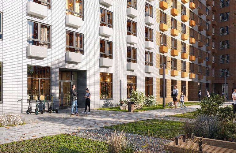Во дворах — благоустроенные зелёные парки с местами для отдыха, детскими и спортивными площадками. Через квартал протянется широкий пешеходный бульвар для прогулок на свежем воздухе. На первых этажах домов работают магазины, кафе и полезные сервисы. А для владельцев автомобилей предусмотрены подземные паркинги.