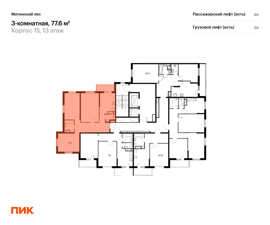 В районе Митино продаётся 3-комнатная квартира квартира площадью 77.6 на 13 этаже 25 этажного дома (корпус 15, секция 7) в проекте ПИК «Митинский лес». Удобное расположение 20 минут пешком до станции метро «Пятницкое шоссе». 8 минут на автомобиле до Пятницкого шоссе и 30 минут до центра Москвы. 11 минут на машине до гипермаркета «Глобус» и крупных фитнес-клубов. 3 минуты пешком до Митинского парка. Особенности проекта «Митинский лес» — квартал в зелёном районе Митино в окружении парков и рек. В проекте будет вся необходимая инфраструктура. А удобные и разнообразные планировки позволят каждому выбрать квартиру для собственного сценария жизни. Преимущества проекта: Отделка: Без отделки Особенности планировки: Два и более санузла, Лоджия Два детских сада на 150 и 235 мест и школа для 1100 учеников на территории проекта. Дворы-парки с местами для отдыха, детскими и спортивными площадками. Пешеходный бульвар для прогулок и отдыха. Магазины, кафе и полезные сервисы на первых этажах домов. Подземные паркинги. АртикулО застройщике