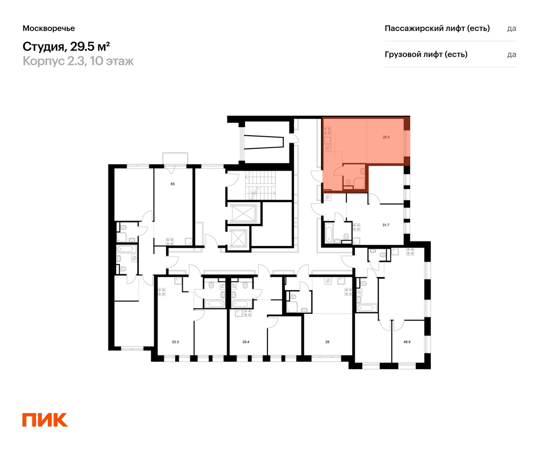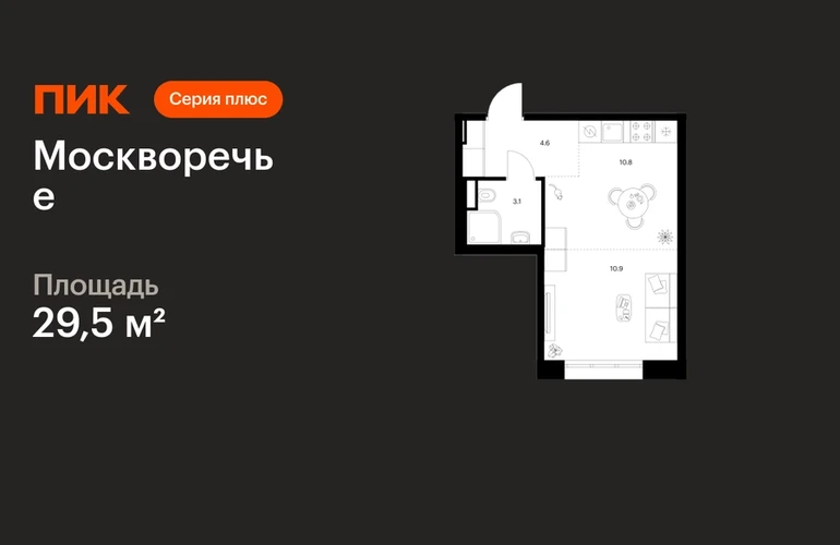 В районе Москворечье-Сабурово продаётся студия квартира площадью 29.5 кв. м на 10 этаже 12 этажного дома (корпус, секция) в проекте ПИК «Москворечье». Удобное расположение 18 минут пешком до станции метро «Каширская» и 19 минут до метро «Чертановская». 1 минута на автомобиле до ЮВХ, 13 минут до ТТК и 15 минут до МКАД. 15 минут пешком до ТРК «Москворечье» и 27 минут до ТДЦ «Варшавский». 16 минут пешком до «Долины реки Чертановки» и 30 минут до парка «Коломенское». Особенности проекта «Москворечье» — масштабный проект с авторской архитектурой в Москворечье-Сабурово. Здесь создана качественная среда для полноценной жизни, работы и отдыха. А удобные и разнообразные планировки позволят каждому выбрать квартиру для собственного сценария жизни. Преимущества проекта: Отделка: Готовая Дизайнерские лобби с быстрыми и тихими лифтами, зонами ожидания и колясочными. Два детсада на 350 мест каждый, школа на 1350 мест и поликлиника на территории проекта. Пешеходный бульвар с местами для отдыха, игровыми и спортивными площадками. Первые этажи с пешеходными галереями, магазинами, кафе и полезными сервисами. Подземный паркинг для автомобилей и мотоциклов. Артикул _О застройщике