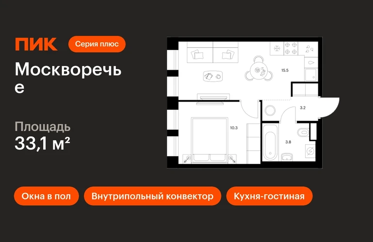 В районе Москворечье-Сабурово продаётся 1-комнатная квартира квартира площадью 33.1 кв. м на 2 этаже 12 этажного дома (корпус, секция) в проекте ПИК «Москворечье». Удобное расположение 18 минут пешком до станции метро «Каширская» и 19 минут до метро «Чертановская». 1 минута на автомобиле до ЮВХ, 13 минут до ТТК и 15 минут до МКАД. 15 минут пешком до ТРК «Москворечье» и 27 минут до ТДЦ «Варшавский». 16 минут пешком до «Долины реки Чертановки» и 30 минут до парка «Коломенское». Особенности проекта «Москворечье» — масштабный проект с авторской архитектурой в Москворечье-Сабурово. Здесь создана качественная среда для полноценной жизни, работы и отдыха. А удобные и разнообразные планировки позволят каждому выбрать квартиру для собственного сценария жизни. Преимущества проекта: Отделка: Готовая Особенности планировки: Кухня-гостиная, Окна в пол, Внутрипольные конвекторы Дизайнерские лобби с быстрыми и тихими лифтами, зонами ожидания и колясочными. Два детсада на 350 мест каждый, школа на 1350 мест и поликлиника на территории проекта. Пешеходный бульвар с местами для отдыха, игровыми и спортивными площадками. Первые этажи с пешеходными галереями, магазинами, кафе и полезными сервисами. Подземный паркинг для автомобилей и мотоциклов. Артикул _О застройщике