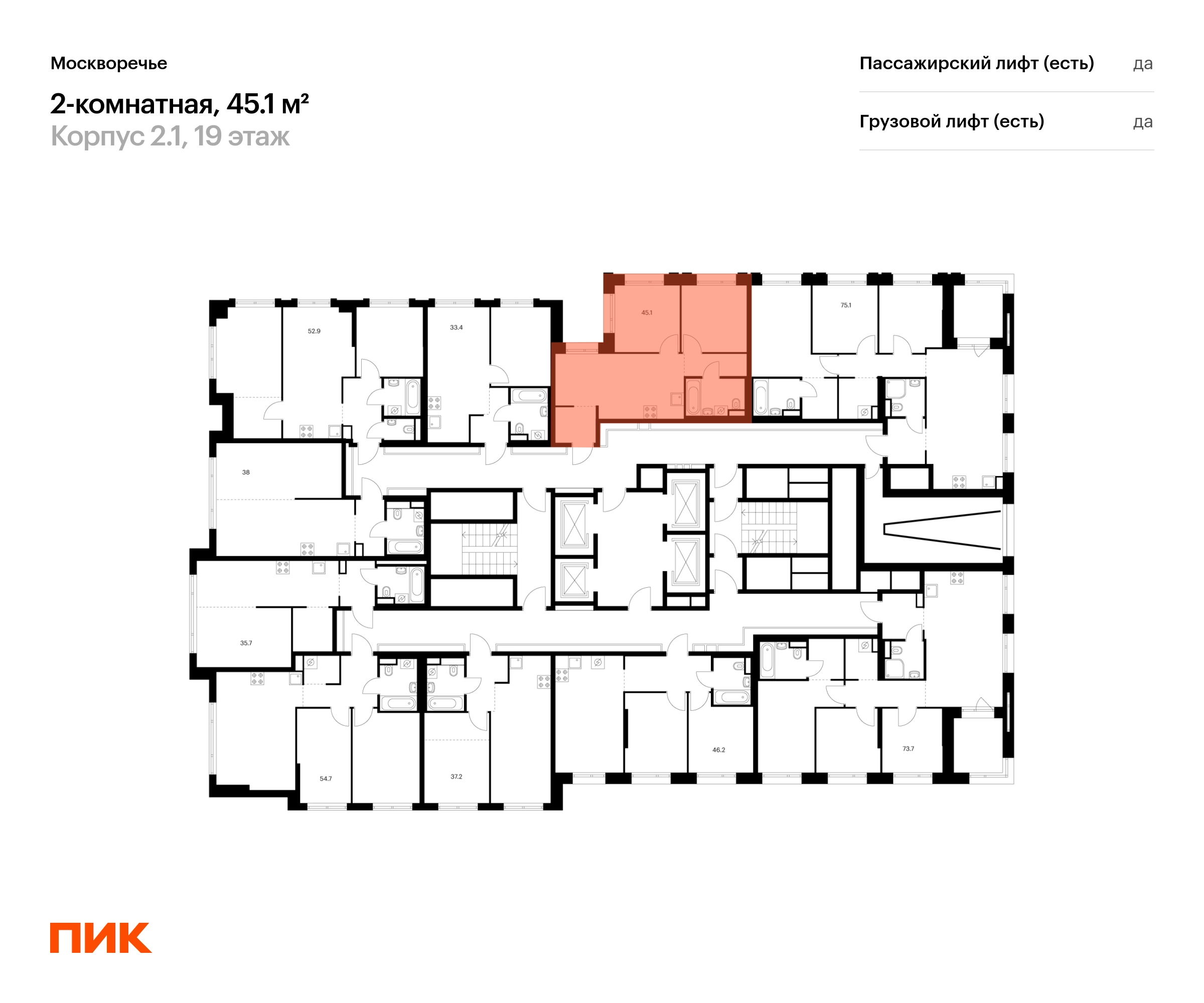 В районе Москворечье-Сабурово продаётся 2-комнатная квартира квартира площадью 45.1 кв. м на 19 этаже 29 этажного дома (корпус, секция) в проекте ПИК «Москворечье». Удобное расположение 18 минут пешком до станции метро «Каширская» и 19 минут до метро «Чертановская». 1 минута на автомобиле до ЮВХ, 13 минут до ТТК и 15 минут до МКАД. 15 минут пешком до ТРК «Москворечье» и 27 минут до ТДЦ «Варшавский». 16 минут пешком до «Долины реки Чертановки» и 30 минут до парка «Коломенское». Особенности проекта «Москворечье» — масштабный проект с авторской архитектурой в Москворечье-Сабурово. Здесь создана качественная среда для полноценной жизни, работы и отдыха. А удобные и разнообразные планировки позволят каждому выбрать квартиру для собственного сценария жизни. Преимущества проекта: Отделка: Готовая Особенности планировки: Кухня-гостиная Дизайнерские лобби с быстрыми и тихими лифтами, зонами ожидания и колясочными. Два детсада на 350 мест каждый, школа на 1350 мест и поликлиника на территории проекта. Пешеходный бульвар с местами для отдыха, игровыми и спортивными площадками. Первые этажи с пешеходными галереями, магазинами, кафе и полезными сервисами. Подземный паркинг для автомобилей и мотоциклов. Артикул _О застройщике