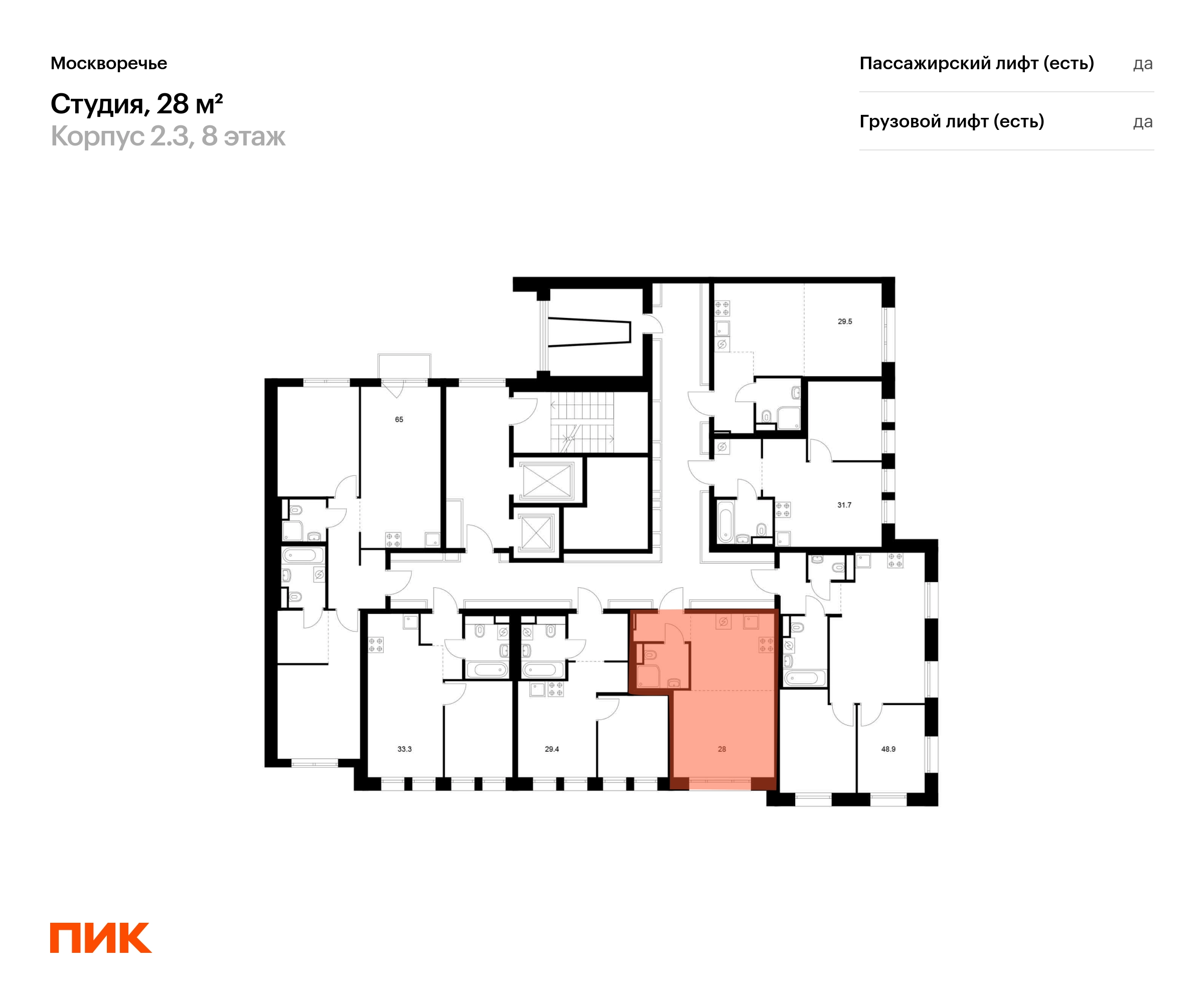 В районе Москворечье-Сабурово продаётся студия квартира площадью 28 кв. м на 8 этаже 12 этажного дома (корпус, секция) в проекте ПИК «Москворечье». Удобное расположение 18 минут пешком до станции метро «Каширская» и 19 минут до метро «Чертановская». 1 минута на автомобиле до ЮВХ, 13 минут до ТТК и 15 минут до МКАД. 15 минут пешком до ТРК «Москворечье» и 27 минут до ТДЦ «Варшавский». 16 минут пешком до «Долины реки Чертановки» и 30 минут до парка «Коломенское». Особенности проекта «Москворечье» — масштабный проект с авторской архитектурой в Москворечье-Сабурово. Здесь создана качественная среда для полноценной жизни, работы и отдыха. А удобные и разнообразные планировки позволят каждому выбрать квартиру для собственного сценария жизни. Преимущества проекта: Отделка: Дизайнерские лобби с быстрыми и тихими лифтами, зонами ожидания и колясочными. Два детсада на 350 мест каждый, школа на 1350 мест и поликлиника на территории проекта. Пешеходный бульвар с местами для отдыха, игровыми и спортивными площадками. Первые этажи с пешеходными галереями, магазинами, кафе и полезными сервисами. Подземный паркинг для автомобилей и мотоциклов. Артикул _О застройщике