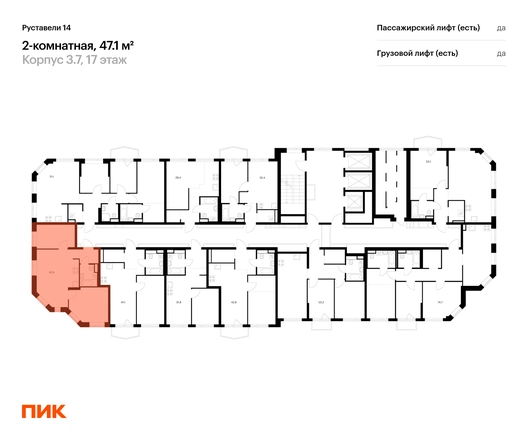 В Бутырском районе продаётся 2-комнатная квартира квартира площадью47.1 на 17 этаже 21 этажного дома (корпус 3.7, секция 3) в проекте ПИК «Руставели 14». Удобное расположение 3 минуты пешком до станции метро «Бутырская». 12 минут пешком до МЦД «Останкино». 5 минут на автомобиле до ТТК. 10 минуты пешком до Гончаровского парка и 15 минут до Останкинской телебашни. Особенности проекта «Руставели 14» — квартал «Серии плюс» с уникальной архитектурой в историческом районе Москвы. Здесь можно купить квартиру с готовой отделкой и видом на Останкинскую башню. У жителей будет всё для комфортной жизни: зелёные дворы-парки, прогулочные аллеи, свой детский сад и образовательный центр рядом с домом. Преимущества проекта: Отделка: Готовая Особенности планировки: Разнесенные спальни, Кухня-гостиная Дизайнерские лобби с быстрыми и тихими лифтами, зонами ожидания и колясочными. Детский сад для 300 малышей и образовательный центр с детским садом на 125 мест и школой для 950 учеников на территории проекта. Дворы-парки с местами для отдыха, игровыми и спортивными площадками. На первых этажах домов — магазины, кафе и полезные сервисы. Подземный двухуровневый паркинг с местами для электрокаров. Артикул _О застройщике