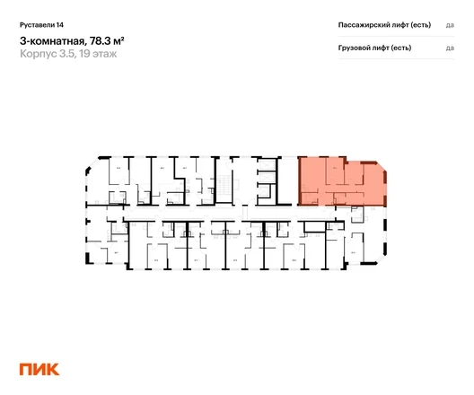В Бутырском районе продаётся 3-комнатная квартира квартира площадью78.3 на 19 этаже 21 этажного дома (корпус 3.5, секция 1) в проекте ПИК «Руставели 14». Удобное расположение 3 минуты пешком до станции метро «Бутырская». 12 минут пешком до МЦД «Останкино». 5 минут на автомобиле до ТТК. 10 минуты пешком до Гончаровского парка и 15 минут до Останкинской телебашни. Особенности проекта «Руставели 14» — квартал «Серии плюс» с уникальной архитектурой в историческом районе Москвы. Здесь можно купить квартиру с готовой отделкой и видом на Останкинскую башню. У жителей будет всё для комфортной жизни: зелёные дворы-парки, прогулочные аллеи, свой детский сад и образовательный центр рядом с домом. Преимущества проекта: Отделка: Дизайнерские лобби с быстрыми и тихими лифтами, зонами ожидания и колясочными. Детский сад для 300 малышей и образовательный центр с детским садом на 125 мест и школой для 950 учеников на территории проекта. Дворы-парки с местами для отдыха, игровыми и спортивными площадками. На первых этажах домов — магазины, кафе и полезные сервисы. Подземный двухуровневый паркинг с местами для электрокаров. Артикул _О застройщике