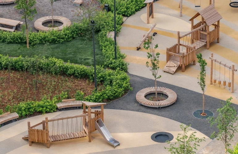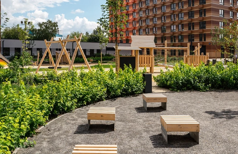 На территории проекта уже работает собственный детский сад и строится школа. Во дворах — зелёный парк с местами для отдыха, детскими и спортивными площадками. Для тихого и активного отдыха появится МультиХаб «Яблони» с красивым садом, большой детской игровой зоной и спортивным бульваром. На первых этажах домов — магазины, кафе и полезные сервисы. А для владельцев автомобилей предусмотрен подземный паркинг.