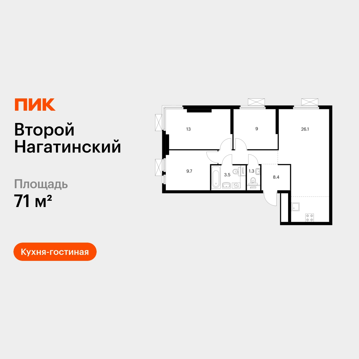 В районе Нагатино-Садовники продаётся 3-комнатная квартира квартира площадью 71 на 30 этаже _ этажного дома (корпус 1.3, секция 3) в проекте ПИК «Второй Нагатинский». Удобное расположение 18 минут до станции метро «Коломенская» и 20 минут до метро «Нагатинская». 3 минуты на автомобиле до Варшавского и Каширского шоссе. 7 минут на автомобиле до ТЦ «Гудзон» и «Каширский двор». 20 минут пешком до Нагатинской набережной и 10 минут на машине до парка развлечений «Остров мечты». Особенности проекта «Первый Дубровский» — квартал с собственной инфраструктурой у Нагатинской набережной. Удобные и разнообразные планировки позволят каждому выбрать квартиру для собственного сценария жизни. Преимущества проекта: Отделка: Готовая Особенности планировки: Кухня-гостиная, Два и более санузла Детский сад для 200 малышей и школа для 550 учеников на территории квартала. Дворы-парки с местами для отдыха, детскими и спортивными площадками. Пешеходный бульвар для прогулок и отдыха. MultiHub «Яблони» с красивым садом, большой детской игровой зоной и спортивным бульваром. Магазины, кафе и полезные сервисы на первых этажах домов. Подземный паркинг. АртикулО застройщике