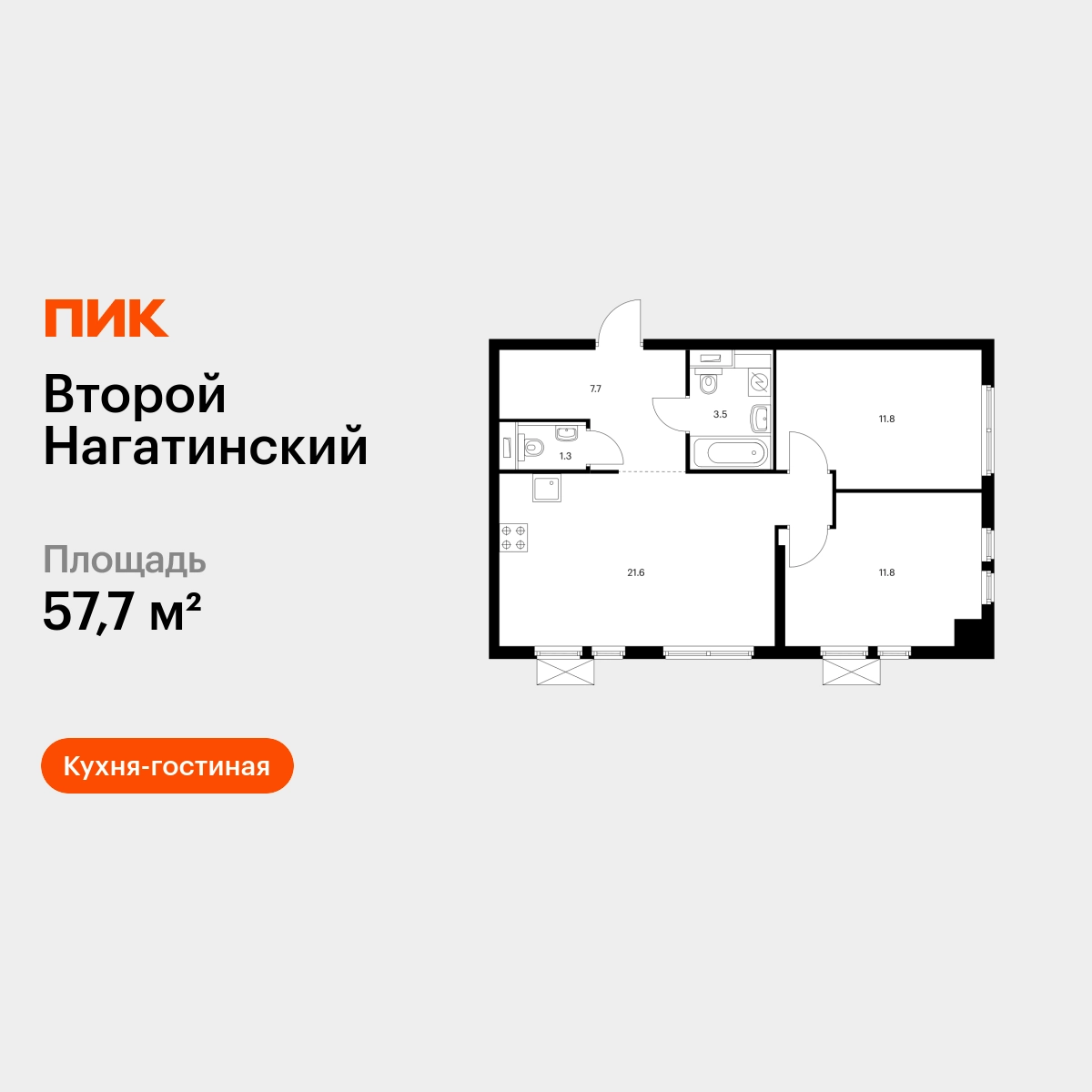 В районе Нагатино-Садовники продаётся 2-комнатная квартира квартира площадью 57.7 на 2 этаже _ этажного дома (корпус 7, секция 3) в проекте ПИК «Второй Нагатинский». Удобное расположение 18 минут до станции метро «Коломенская» и 20 минут до метро «Нагатинская». 3 минуты на автомобиле до Варшавского и Каширского шоссе. 7 минут на автомобиле до ТЦ «Гудзон» и «Каширский двор». 20 минут пешком до Нагатинской набережной и 10 минут на машине до парка развлечений «Остров мечты». Особенности проекта «Первый Дубровский» — квартал с собственной инфраструктурой у Нагатинской набережной. Удобные и разнообразные планировки позволят каждому выбрать квартиру для собственного сценария жизни. Преимущества проекта: Отделка: Готовая Особенности планировки: Кухня-гостиная, Два и более санузла Детский сад для 200 малышей и школа для 550 учеников на территории квартала. Дворы-парки с местами для отдыха, детскими и спортивными площадками. Пешеходный бульвар для прогулок и отдыха. MultiHub «Яблони» с красивым садом, большой детской игровой зоной и спортивным бульваром. Магазины, кафе и полезные сервисы на первых этажах домов. Подземный паркинг. АртикулО застройщике