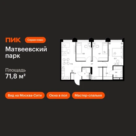 В районе Очаково-Матвеевское продаётся 3-комнатная квартира квартира площадью 71.8 на 25 этаже 25 этажного дома (корпус, секция) в проекте ПИК «Матвеевский парк». Удобное расположение 3 минуты пешком до станции метро «Аминьевская». 20 минут пешком до МЦД-4 «Очаково». 8 минут на автомобиле до Кутузовского проспекта и 12 минут до ТТК. 2 минуты пешком до «Долины реки Навершки», 6 минут на автомобиле до парка «Олимпийская деревня» и 10 минут до Воробьёвых гор. Особенности проекта «Матвеевский парк» — проект «Серии плюс», где создана качественная среда для полноценной жизни, работы и отдыха. А удобные и разнообразные планировки позволят каждому выбрать квартиру для собственного сценария жизни. Преимущества проекта: Отделка: Готовая Особенности планировки: Гардеробная, Постирочная, Мастер-спальня, Кухня-гостиная, Два и более санузла, Окна в пол, Вид на Москва-Сити, Внутрипольные конвекторы, Умная планировка Дизайнерские лобби с зонами ожидания, гостевым санузлом и колясочными. Пять школ, шесть детских садов, поликлиника и многофункциональный спортивный комплекс на территории «Матвеевского кластера». СпортХаб «Экстрим» — пространство площадью 3 500 м² для любителей экстремальных видов спорта. Пешеходный бульвар с сухим фонтаном с подсветкой, игровыми и спортивными площадками. Современное общественное пространство ОМА. АртикулО застройщике