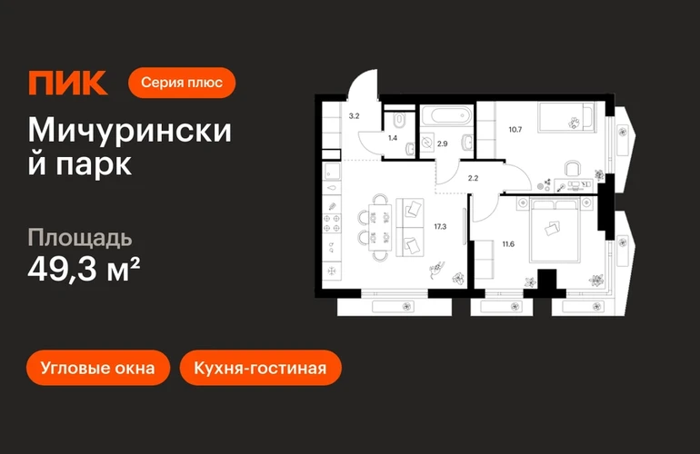В районе Очаково-Матвеевское продаётся 2-комнатная квартира квартира площадью 49.3 на 17 этаже 23 этажного дома (корпус, секция) в проекте ПИК «Мичуринский парк». Удобное расположение 7 минут пешком до станции метро «Озёрная». 3 минуты на автомобиле до МКАД и 20 минут до ТТК. 12 минут пешком до парка Школьников и 15 минут до Очаковского пруда. 20 минут на автомобиле до ТЦ Kvartal West и «Океания». Особенности проекта «Мичуринский парк» — проект с корпусами «Серии плюс» в районе, где создана качественная среда для полноценной жизни, работы и отдыха. А удобные и разнообразные планировки позволят каждому выбрать квартиру для собственного сценария жизни. Преимущества проекта: Отделка: Готовая Особенности планировки: Кухня-гостиная, Угловые окна Дизайнерские лобби с зонами ожидания и колясочными. Две школы, два детских сада и МФК Lakes на территории проекта. Большое многофункциональное пространство MultiHub «Клевер». Дворы-парки с местами для отдыха, детскими и спортивными площадками. Подземный паркинг. Артикул _О застройщике
