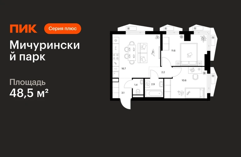 В районе Очаково-Матвеевское продаётся 2-комнатная квартира квартира площадью 48.5 на 12 этаже 23 этажного дома (корпус, секция) в проекте ПИК «Мичуринский парк». Удобное расположение 7 минут пешком до станции метро «Озёрная». 3 минуты на автомобиле до МКАД и 20 минут до ТТК. 12 минут пешком до парка Школьников и 15 минут до Очаковского пруда. 20 минут на автомобиле до ТЦ Kvartal West и «Океания». Особенности проекта «Мичуринский парк» — проект с корпусами «Серии плюс» в районе, где создана качественная среда для полноценной жизни, работы и отдыха. А удобные и разнообразные планировки позволят каждому выбрать квартиру для собственного сценария жизни. Преимущества проекта: Отделка: Дизайнерские лобби с зонами ожидания и колясочными. Две школы, два детских сада и МФК Lakes на территории проекта. Большое многофункциональное пространство MultiHub «Клевер». Дворы-парки с местами для отдыха, детскими и спортивными площадками. Подземный паркинг. Артикул _О застройщике