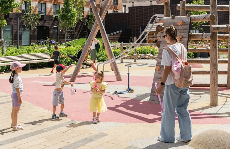 В проект входят жилые дома, школа, детский сад и подземные паркинги. На первых этажах откроются магазины и кафе, а прямо под окнами появятся современные детские площадки и места для отдыха. Ещё на территории квартала появится МультиХаб «Сигнал» для отдыха детей и взрослых: с канатной дорогой, треком с холмами для катания, баскетбольной площадкой и площадкой для тренировок.