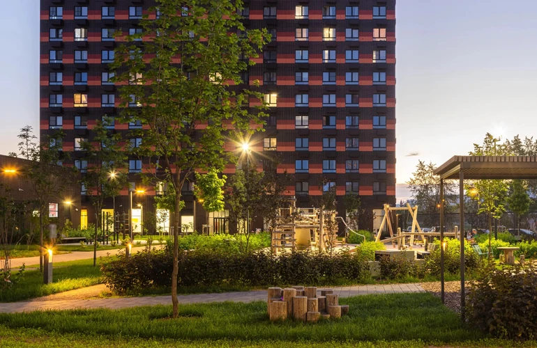 Проект находится вдали от шума крупных магистралей. Вокруг много скверов и парков, есть школы и детские сады, поликлиники, магазины и фитнес-клубы. До торгово-развлекательного центра «Парк Хаус» всего 3 минуты пешком. А в 15 минутах пешком расположен Главный ботанический сад имени Н. В. Цицина — один из крупнейших ботанических садов в Европе.