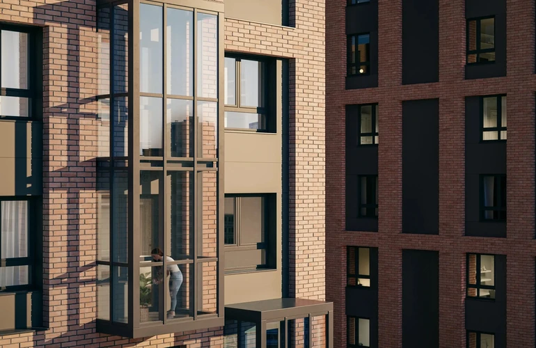 На первых этажах домов — светлые и просторные лобби с двумя выходами и вместительными лифтами.
