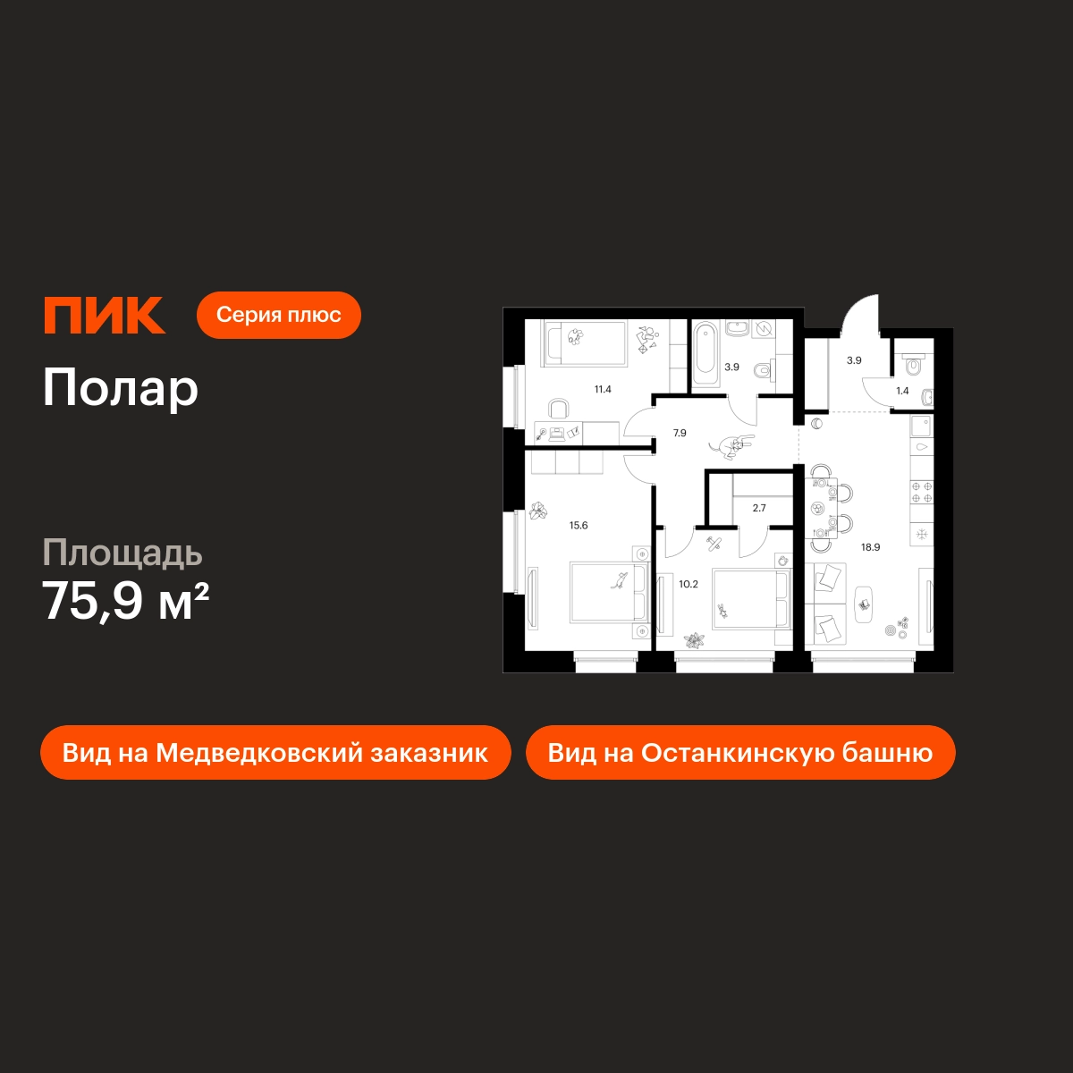 В районе Северное Медведково продаётся 3-комнатная квартира квартира площадью 75.9 на 20 этаже 53 этажного дома (корпус 1.4, секция 1) в проекте ПИК «Полар». Удобное расположение 17 минут пешком до станции метро «Медведково». 8 минут на автомобиле до МКАД и Алтуфьевского шоссе и 16 минут — до СВХ. 2 минуты пешком до Медведковского заказника. Особенности проекта «Полар» — квартал «Серии плюс» с индивидуальной архитектурой. У проекта собственная инфраструктура, а удобные и разнообразные планировки позволят каждому выбрать квартиру для собственного сценария жизни. Преимущества проекта: Отделка: Готовая Особенности планировки: Гардеробная, Кухня-гостиная, Два и более санузла, Вид на Останкинскую башню Просторные и светлые лобби с вместительными лифтами. Детский сад на территории квартала и городская школа в паре минут пешком. Дворы-парки с игровыми и спортивными площадками. Магазины, кафе и полезные сервисы на первых этажах домов. Подземный двухуровневый паркинг. АртикулО застройщике