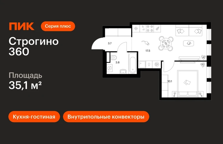 Продаётся 1-комн.квартира площадью 35.10 кв.м на 12 этаже 30 этажного дома (Корпус 1.2, секция 1) проекта ПИК Строгино 360. Светлый просторный подъезд на уровне земли, функциональная планировка, большие окна, с отделкой. «Строгино 360» — флагманский проект ПИК в 20 минутах от центра Москвы, в одном из самых экологичных районов столицы. В 2027 году — к моменту заселения первых домов — в 10 минутах пешком от проекта откроется станция метро «Липовая роща». В квартале всё настроено на 360 градусов: квартиры с террасами и панорамными видами на лес и воду, спорт — от йоги до яхтинга — и деловой кластер, где будет создана комфортная среда для работы и бизнеса. Всего в 10 минутах от проекта расположен ТЦ «Vegas Сити» с десятками магазинов в интерьерах городских улиц, каток, кинотеатр, рестораны и аттракционы. Архитектура и гранд-лобби Архитектура квартала органично вписывается в окружающий ландшафт. В отделке используются натуральные материалы и спокойные цвета, которые дополняют природные пространства вокруг квартала. Специально для «Строгино 360» бюро .dpt разработало авторский дизайн гранд-лобби, где можно встретиться с близкими или партнёрами, поработать или поиграть с детьми. Для этого здесь появятся коворкинг, ресепшен, пространства для отдыха, игровая для детей и гостевой санузел. Инфраструктура проекта «Строгино 360» — больше чем жилой квартал. Здесь создана вся необходимая инфраструктура для комфортной и насыщенной жизни. Главной артерией станет пешеходный бульвар, длиной 3,4 км — с магазинами, кафе и продуманными пространствами для спорта и отдыха. Для детей в партнёрстве с «Фондом развития Физтех-школ» при поддержке МФТИ мы построим образовательный центр. Планировки В доминанте проекта — корпусе 1.2 — вы найдёте квартиры с террасами и живописными видами на на Москву-реку, Строгинский затон и Серебряный Бор. А в малоэтажных корпусах 1.1.1–1.1.3 создана уютная камерная атмосфера благодаря небольшому количеству квартир на этаже. Также здесь вы можете выбрать квартиру с системой умного дома. Артикул - 1052211О застройщике