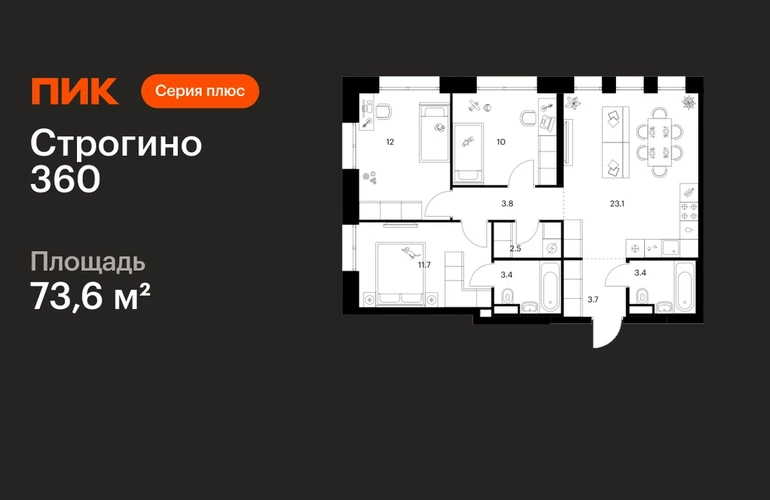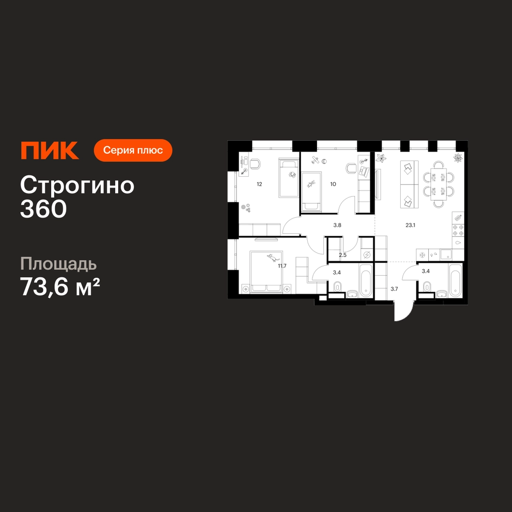 Продаётся 3-комн.квартира площадью 73.60 кв.м на 2 этаже 10 этажного дома (Корпус 1.1.2, секция 2) проекта ПИК Строгино 360. Светлый просторный подъезд на уровне земли, функциональная планировка, большие окна. «Строгино 360» — флагманский проект ПИК в 20 минутах от центра Москвы, в одном из самых экологичных районов столицы. В 2027 году — к моменту заселения первых домов — в 10 минутах пешком от проекта откроется станция метро «Липовая роща». В квартале всё настроено на 360 градусов: квартиры с террасами и панорамными видами на лес и воду, спорт — от йоги до яхтинга — и деловой кластер, где будет создана комфортная среда для работы и бизнеса. Всего в 10 минутах от проекта расположен ТЦ «Vegas Сити» с десятками магазинов в интерьерах городских улиц, каток, кинотеатр, рестораны и аттракционы. Архитектура и гранд-лобби Архитектура квартала органично вписывается в окружающий ландшафт. В отделке используются натуральные материалы и спокойные цвета, которые дополняют природные пространства вокруг квартала. Специально для «Строгино 360» бюро .dpt разработало авторский дизайн гранд-лобби, где можно встретиться с близкими или партнёрами, поработать или поиграть с детьми. Для этого здесь появятся коворкинг, ресепшен, пространства для отдыха, игровая для детей и гостевой санузел. Инфраструктура проекта «Строгино 360» — больше чем жилой квартал. Здесь создана вся необходимая инфраструктура для комфортной и насыщенной жизни. Главной артерией станет пешеходный бульвар, длиной 3,4 км — с магазинами, кафе и продуманными пространствами для спорта и отдыха. Для детей в партнёрстве с «Фондом развития Физтех-школ» при поддержке МФТИ мы построим образовательный центр. Планировки В доминанте проекта — корпусе 1.2 — вы найдёте квартиры с террасами и живописными видами на на Москву-реку, Строгинский затон и Серебряный Бор. А в малоэтажных корпусах 1.1.1–1.1.3 создана уютная камерная атмосфера благодаря небольшому количеству квартир на этаже. Также здесь вы можете выбрать квартиру с системой умного дома. Артикул - 1050827О застройщике