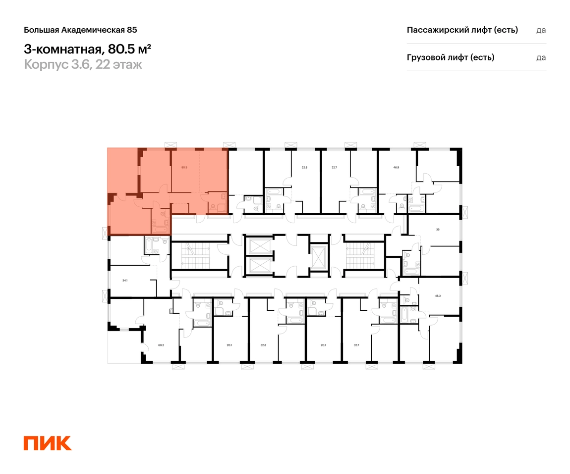 В Тимирязевском районе продаётся 3-комнатный апартамент квартира площадью 80.5 на 22 этаже 24 этажного дома (корпус, секция) в проекте ПИК «Большая Академическая 85». Удобное расположение 11 минут пешком до станции метро «Окружная». 11 минут пешком до станции МЦК «Лихоборы». 1 минута на автомобиле до СВХ, 9 минут до МКАД и 14 минут до ТТК. 30 минут пешком до Ботанического сада. Особенности проекта «Большая Академическая 85» — квартал ПИК в тихом и зелёном Тимирязевском районе Москвы. Проект, где собраны лучшие архитектурные и планировочные решения ПИК, состоит из домов переменной высоты от 11 до 24 этажей. Преимущества проекта: Отделка: Просторные и светлые холлы с быстрыми и тихими лифтами. Детский сад с начальной школой. Local Play — большое игровое пространство для детей. Подземный паркинг. АртикулО застройщике