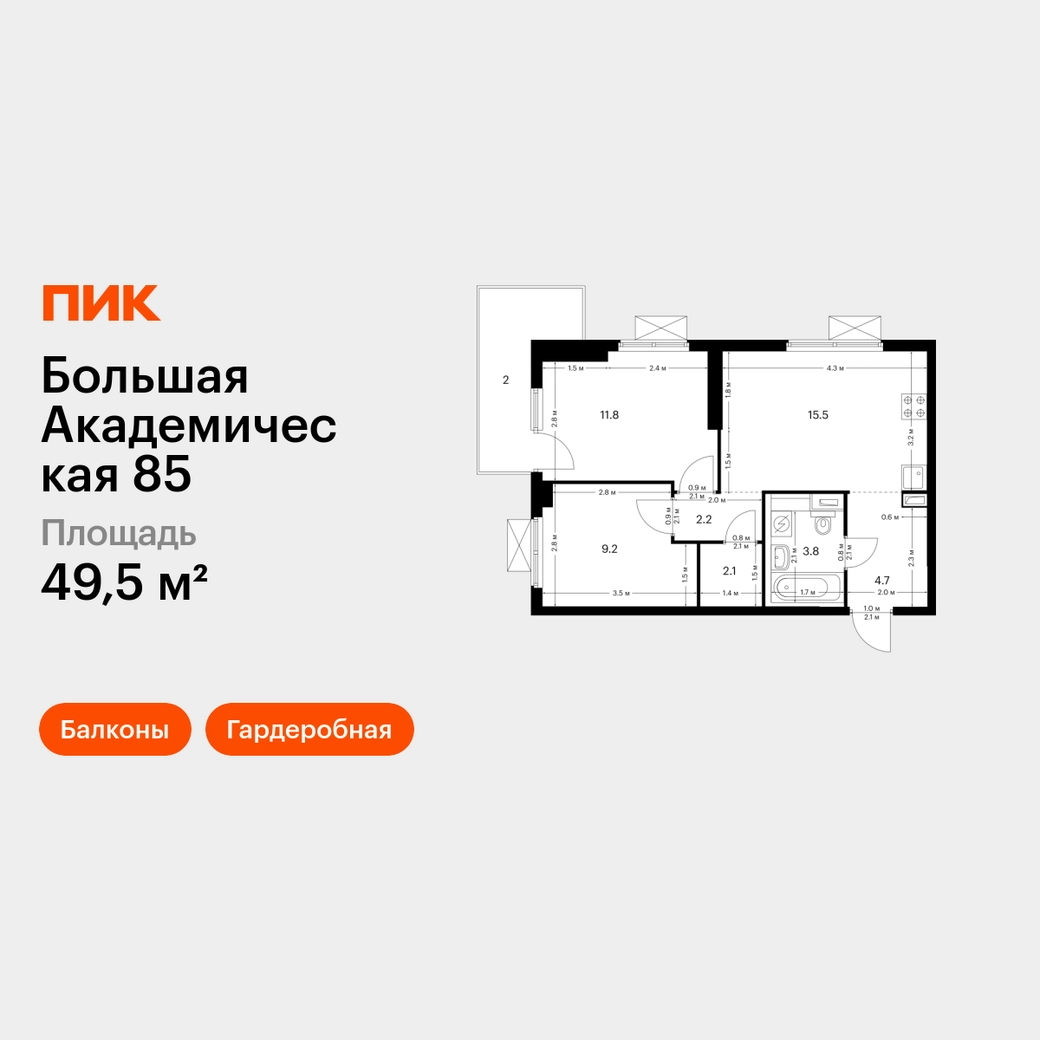 В Тимирязевском районе продаётся 2-комнатная квартира квартира площадью 49.5 на 10 этаже 24 этажного дома (корпус, секция) в проекте ПИК «Большая Академическая 85». Удобное расположение 11 минут пешком до станции метро «Окружная». 11 минут пешком до станции МЦК «Лихоборы». 1 минута на автомобиле до СВХ, 9 минут до МКАД и 14 минут до ТТК. 30 минут пешком до Ботанического сада. Особенности проекта «Большая Академическая 85» — квартал ПИК в тихом и зелёном Тимирязевском районе Москвы. Проект, где собраны лучшие архитектурные и планировочные решения ПИК, состоит из домов переменной высоты от 11 до 24 этажей. Преимущества проекта: Отделка: Просторные и светлые холлы с быстрыми и тихими лифтами. Детский сад с начальной школой. Local Play — большое игровое пространство для детей. Подземный паркинг. АртикулО застройщике