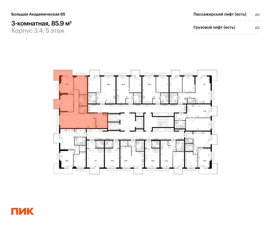 В Тимирязевском районе продаётся 3-комнатная квартира квартира площадью 85.9 на 5 этаже 24 этажного дома (корпус, секция) в проекте ПИК «Большая Академическая 85». Удобное расположение 11 минут пешком до станции метро «Окружная». 11 минут пешком до станции МЦК «Лихоборы». 1 минута на автомобиле до СВХ, 9 минут до МКАД и 14 минут до ТТК. 30 минут пешком до Ботанического сада. Особенности проекта «Большая Академическая 85» — квартал ПИК в тихом и зелёном Тимирязевском районе Москвы. Проект, где собраны лучшие архитектурные и планировочные решения ПИК, состоит из домов переменной высоты от 11 до 24 этажей. Преимущества проекта: Отделка: Просторные и светлые холлы с быстрыми и тихими лифтами. Детский сад с начальной школой. Local Play — большое игровое пространство для детей. Подземный паркинг. АртикулО застройщике