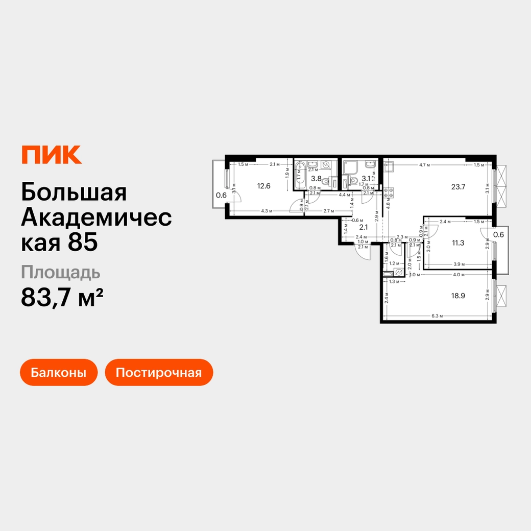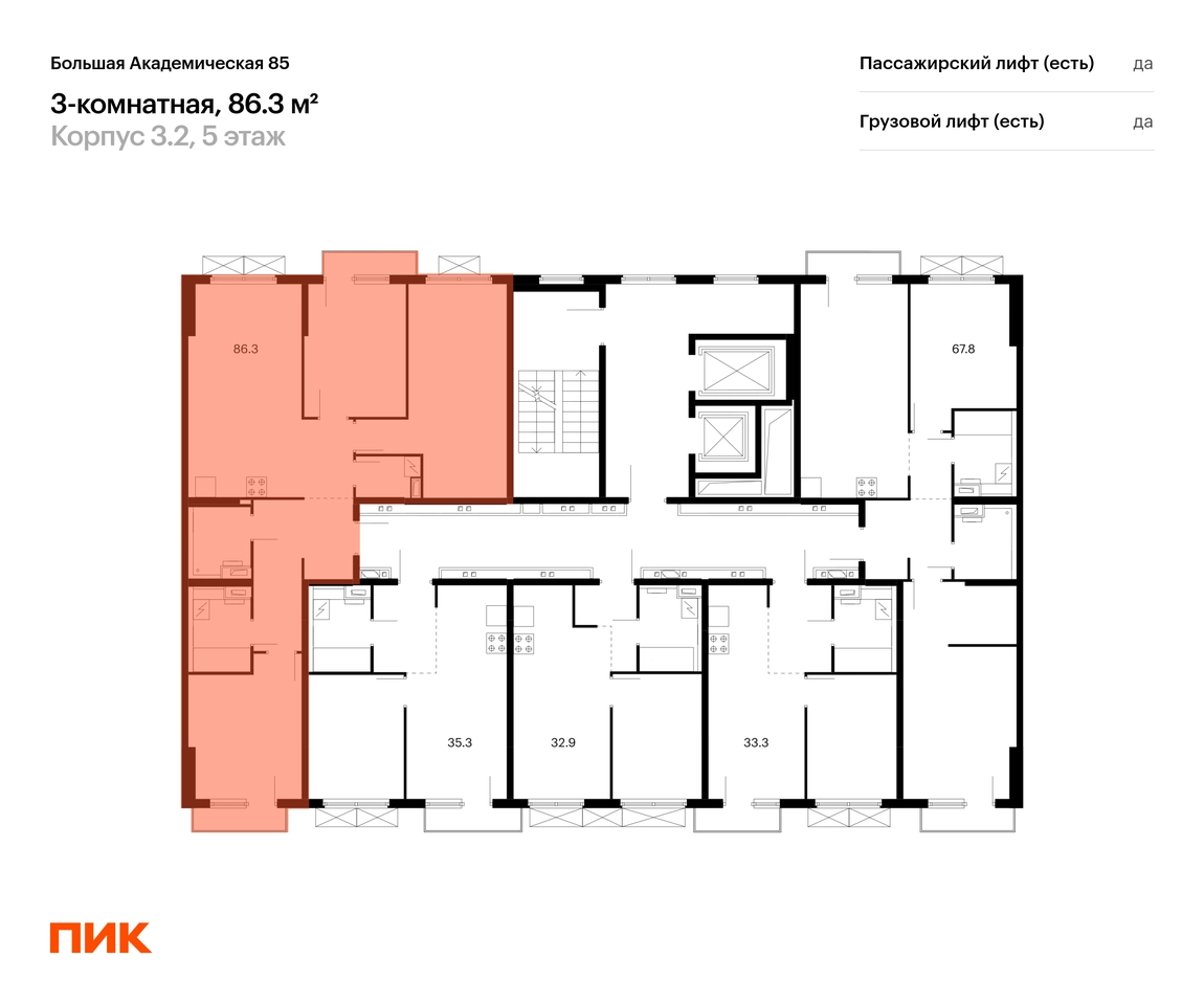 В Тимирязевском районе продаётся 3-комнатная квартира квартира площадью 83.7 на 5 этаже 14 этажного дома (корпус, секция) в проекте ПИК «Большая Академическая 85». Удобное расположение 11 минут пешком до станции метро «Окружная». 11 минут пешком до станции МЦК «Лихоборы». 1 минута на автомобиле до СВХ, 9 минут до МКАД и 14 минут до ТТК. 30 минут пешком до Ботанического сада. Особенности проекта «Большая Академическая 85» — квартал ПИК в тихом и зелёном Тимирязевском районе Москвы. Проект, где собраны лучшие архитектурные и планировочные решения ПИК, состоит из домов переменной высоты от 11 до 24 этажей. Преимущества проекта: Отделка: Просторные и светлые холлы с быстрыми и тихими лифтами. Детский сад с начальной школой. Local Play — большое игровое пространство для детей. Подземный паркинг. АртикулО застройщике