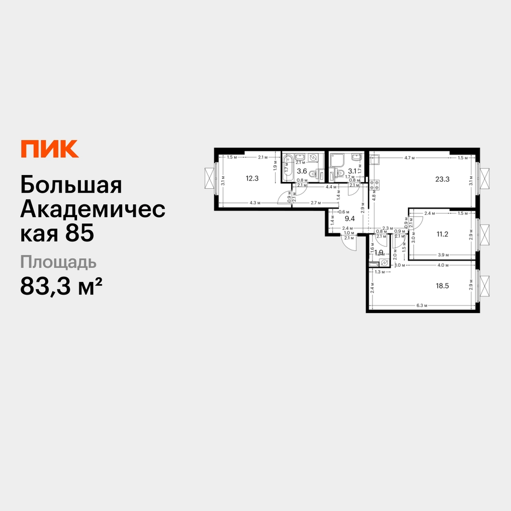 В Тимирязевском районе продаётся 3-комнатная квартира квартира площадью 83.3 на 13 этаже 14 этажного дома (корпус, секция) в проекте ПИК «Большая Академическая 85». Удобное расположение 11 минут пешком до станции метро «Окружная». 11 минут пешком до станции МЦК «Лихоборы». 1 минута на автомобиле до СВХ, 9 минут до МКАД и 14 минут до ТТК. 30 минут пешком до Ботанического сада. Особенности проекта «Большая Академическая 85» — квартал ПИК в тихом и зелёном Тимирязевском районе Москвы. Проект, где собраны лучшие архитектурные и планировочные решения ПИК, состоит из домов переменной высоты от 11 до 24 этажей. Преимущества проекта: Отделка: Просторные и светлые холлы с быстрыми и тихими лифтами. Детский сад с начальной школой. Local Play — большое игровое пространство для детей. Подземный паркинг. АртикулО застройщике